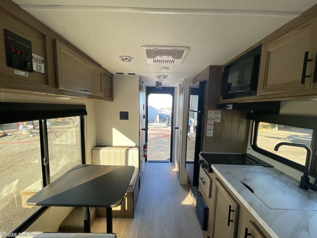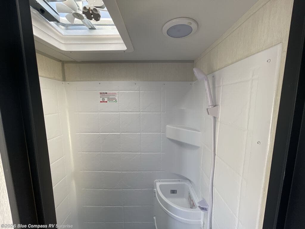 There are lots of features packed into this 19' travel trailer! The rear entry design creates a split bathroom for one person to use the private toilet while another freshens up in the private shower. You can prepare your best home cooked meals with the high output cooktop, the 12V high efficiency refrigerator, and a sink to make clean up easier, plus you can comfortably enjoy your meals at the booth dinette with a TV mount location. The front queen bed provides a comfortable place to lay your head at night. Store your outdoor gear in the outside storage area, rinse the mud off your feet with the outside shower, and watch the big game outdoors with the outside TV mount!