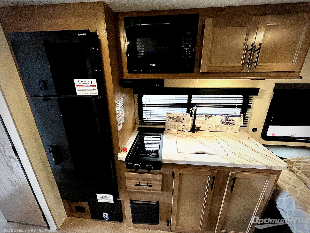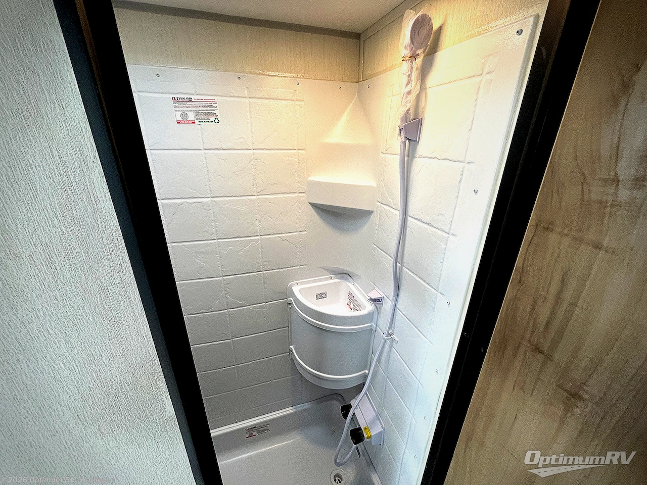 There are lots of features packed into this 19' travel trailer! The rear entry design creates a split bathroom for one person to use the private toilet while another freshens up in the private shower. You can prepare your best home cooked meals with the high output cooktop, the 12V high efficiency refrigerator, and a sink to make clean up easier, plus you can comfortably enjoy your meals at the booth dinette with a TV mount location. The front queen bed provides a comfortable place to lay your head at night. Store your outdoor gear in the outside storage area, rinse the mud off your feet with the outside shower, and watch the big game outdoors with the outside TV mount!