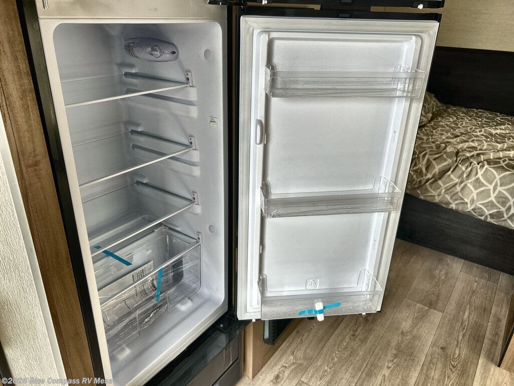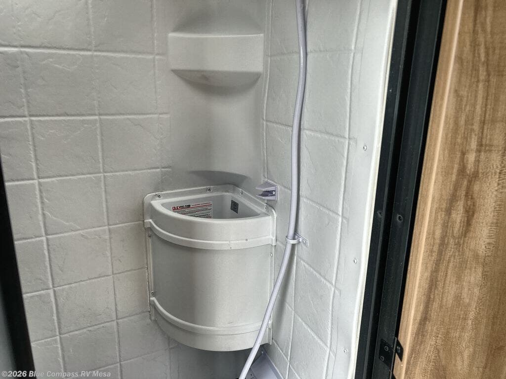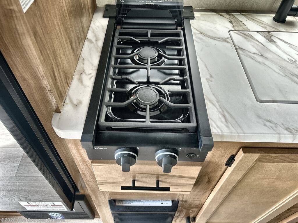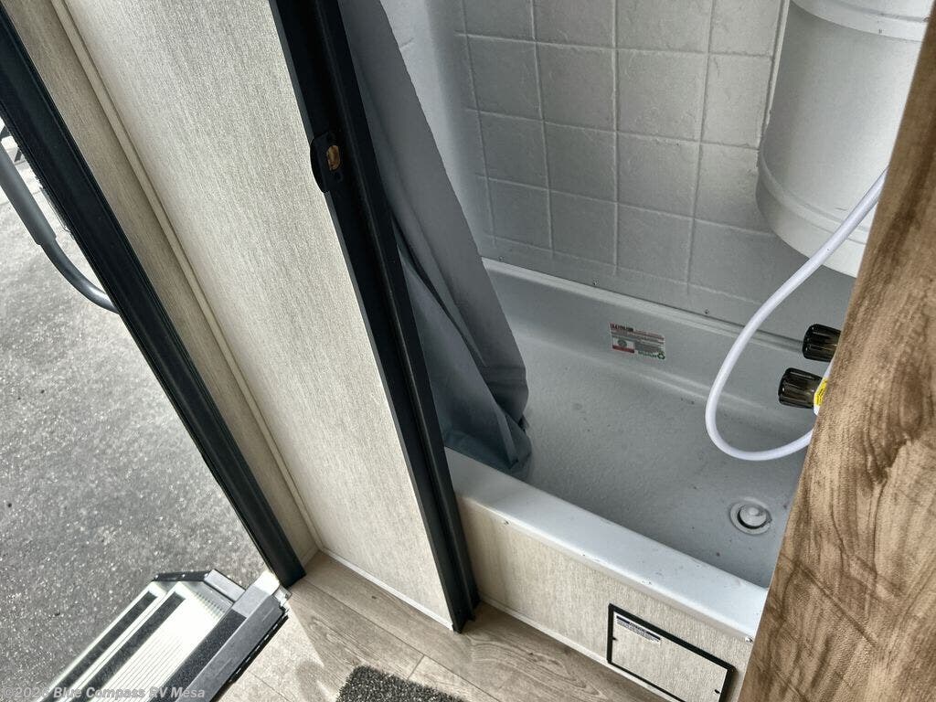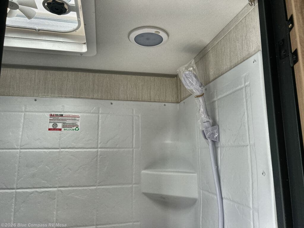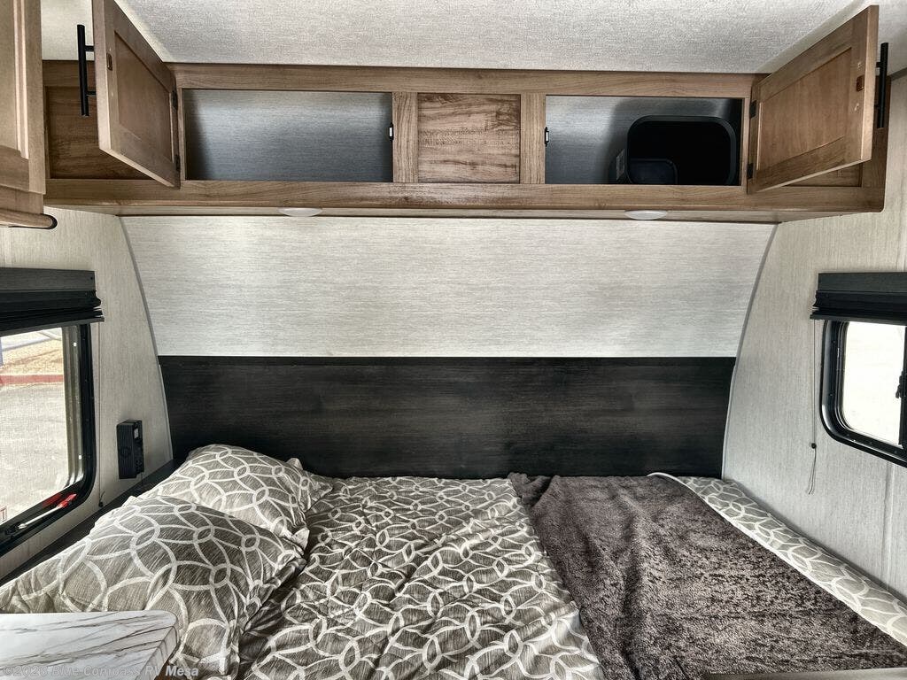 There are lots of features packed into this 19' travel trailer! The rear entry design creates a split bathroom for one person to use the private toilet while another freshens up in the private shower. You can prepare your best home cooked meals with the high output cooktop, the 12V high efficiency refrigerator, and a sink to make clean up easier, plus you can comfortably enjoy your meals at the booth dinette with a TV mount location. The front queen bed provides a comfortable place to lay your head at night. Store your outdoor gear in the outside storage area, rinse the mud off your feet with the outside shower, and watch the big game outdoors with the outside TV mount!