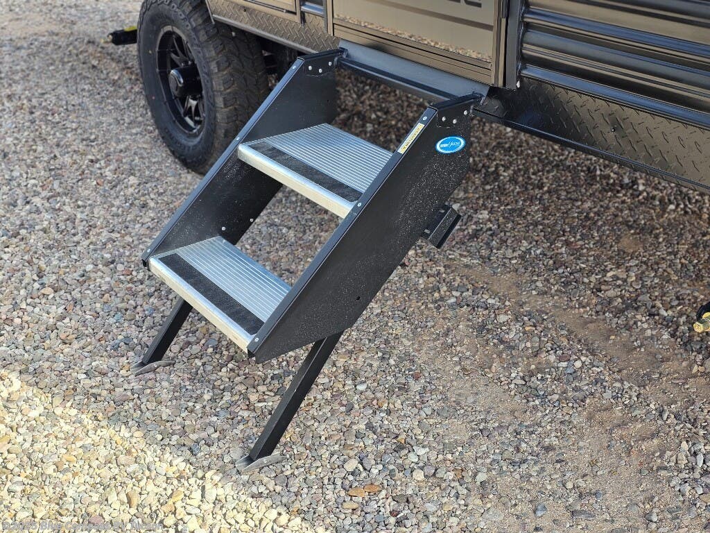 The whole family can sleep comfortably in this travel trailer! It has a set of bunk beds for the kids to sleep on, and you can sleep comfortably on the front queen bed with overhead cabinets and a shelf. There is even an exterior storage plus door that accesses the storage space under the bottom bunk. The chef will enjoy preparing their best home cooked meals either indoors with the high output cooktop or at the outside mini kitchen while staying protected by the 12' power awning!