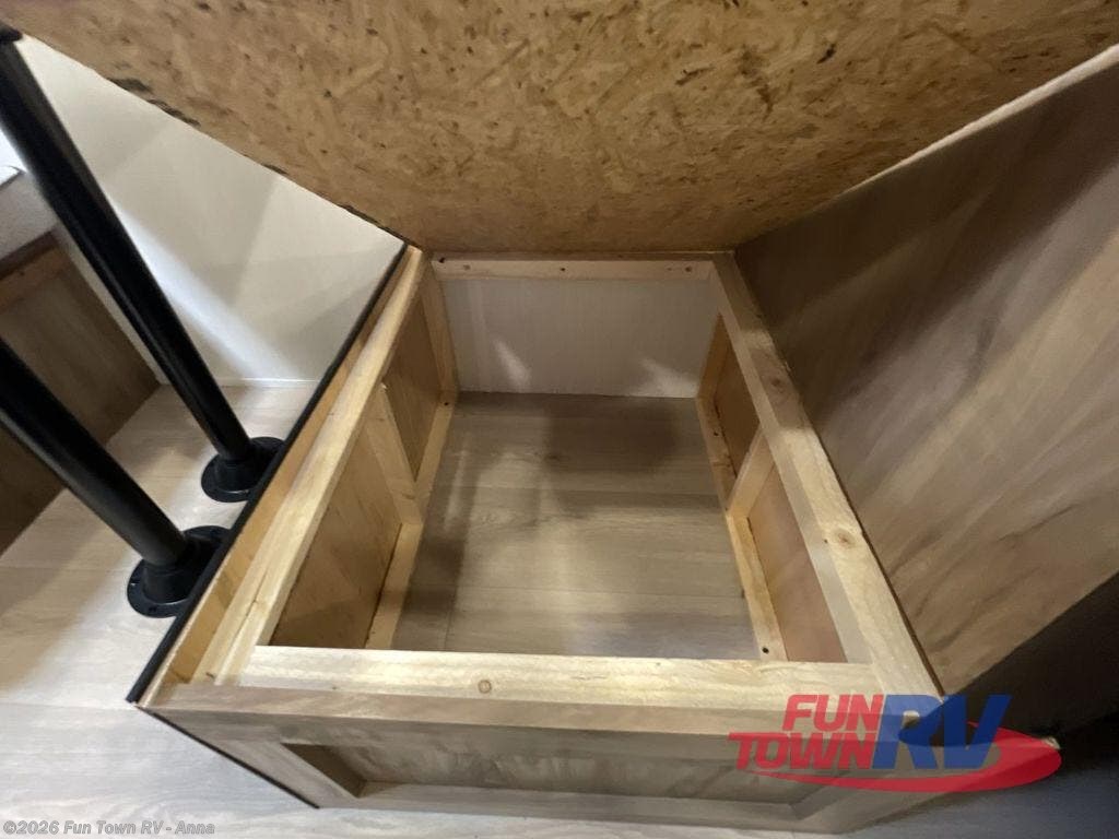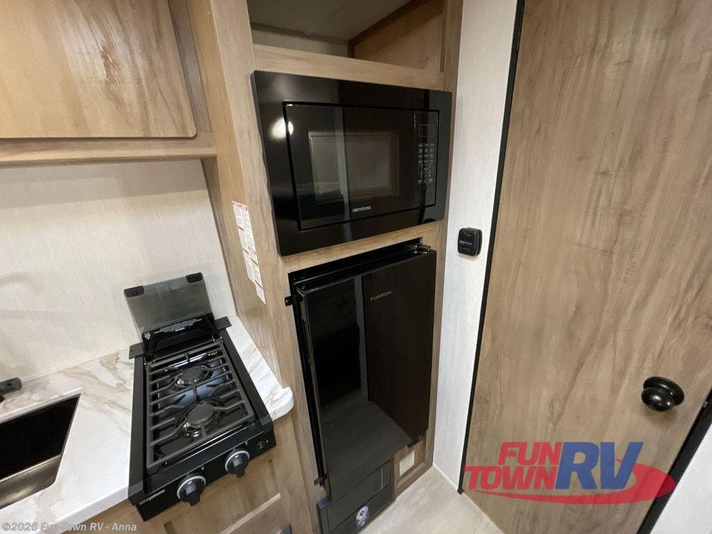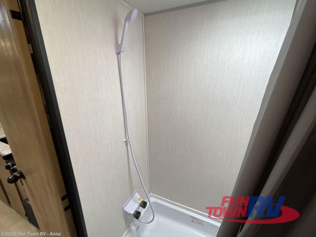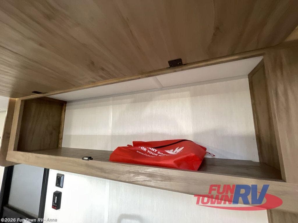 The whole family can sleep comfortably in this travel trailer! It has a set of bunk beds for the kids to sleep on, and you can sleep comfortably on the front queen bed with overhead cabinets and a shelf. The chef will enjoy preparing their best home cooked meals with the high output cooktop, and you can dine at the booth dinette. And the private bath onboard means you won't have to leave your camper in the middle of the night!