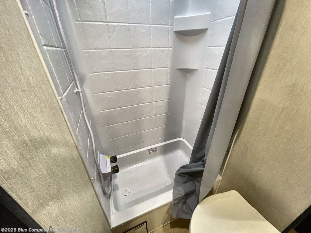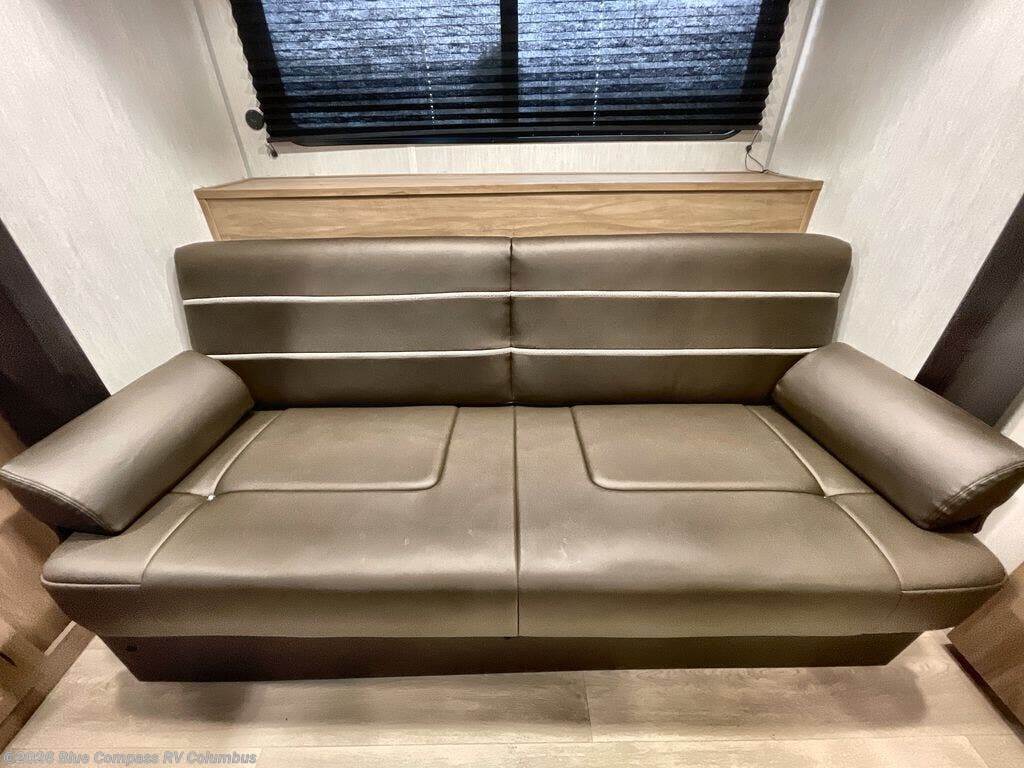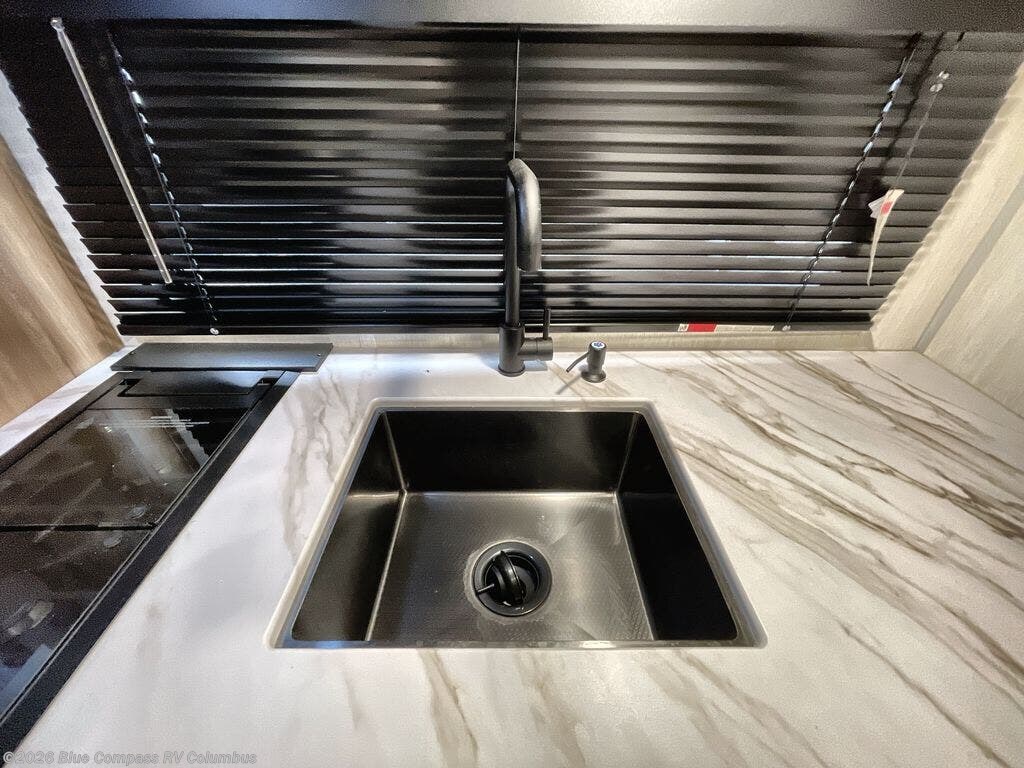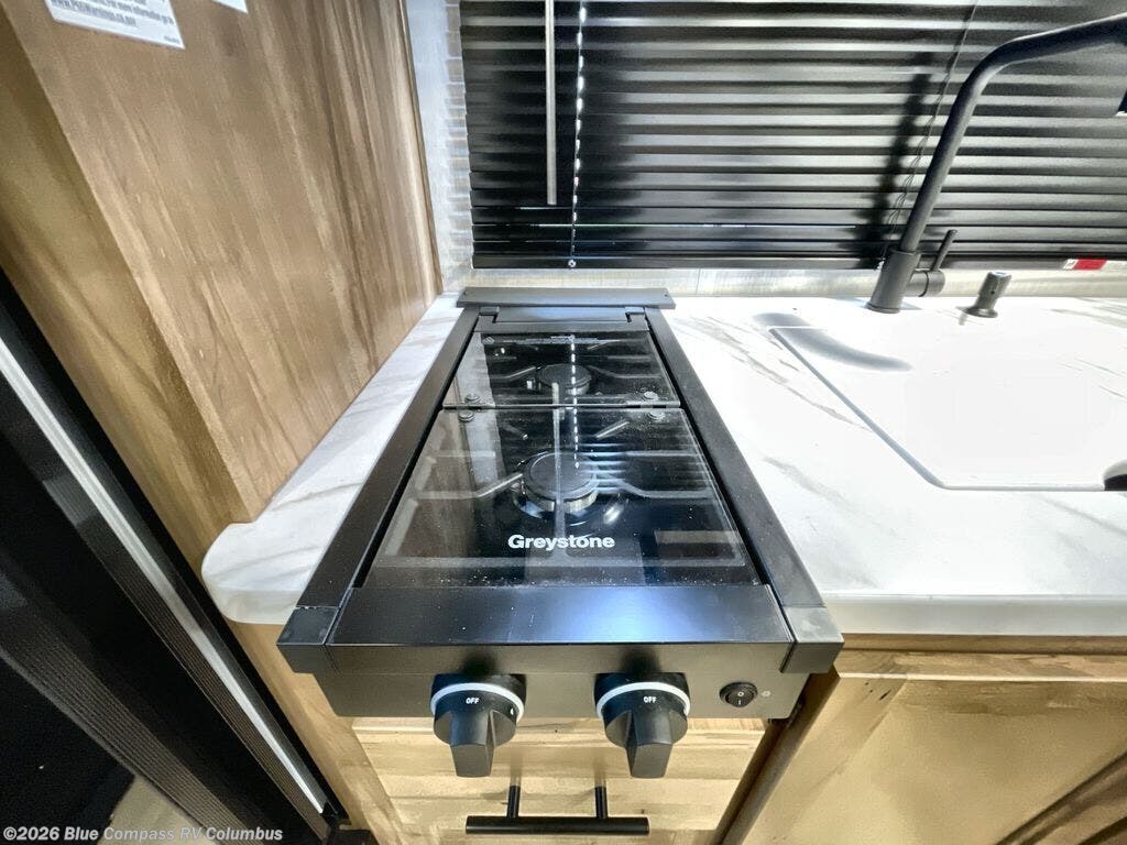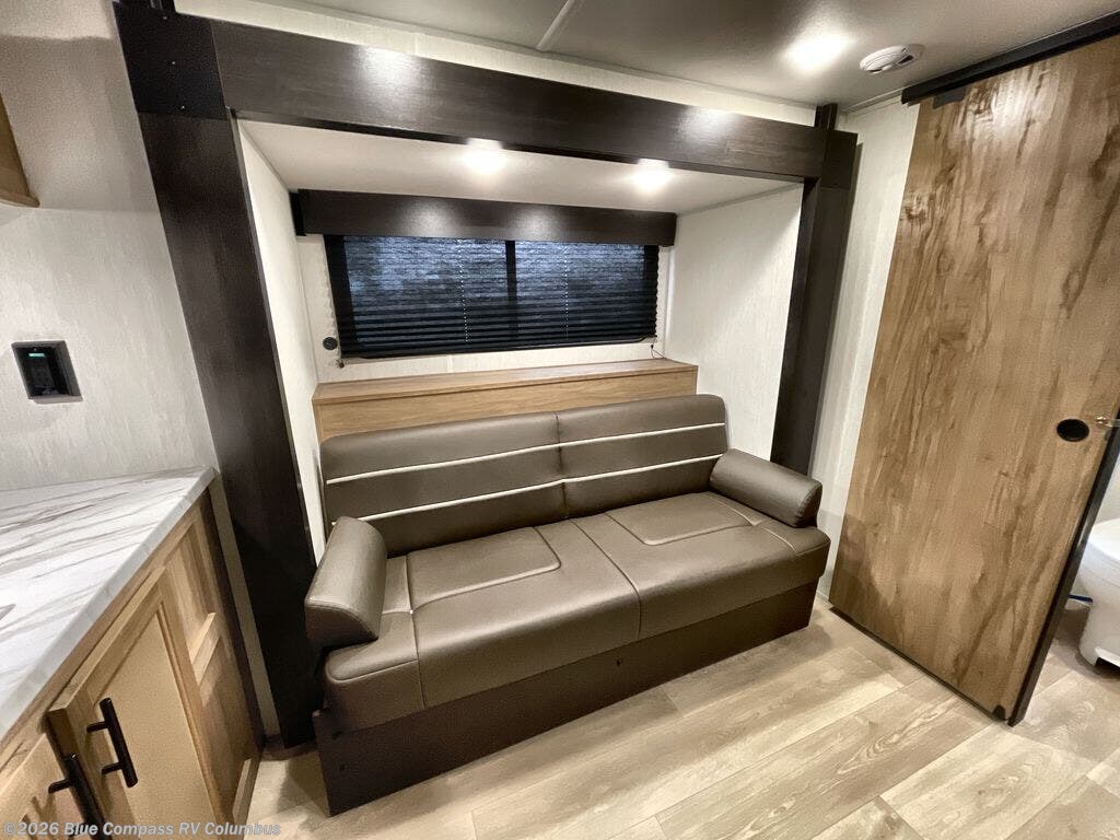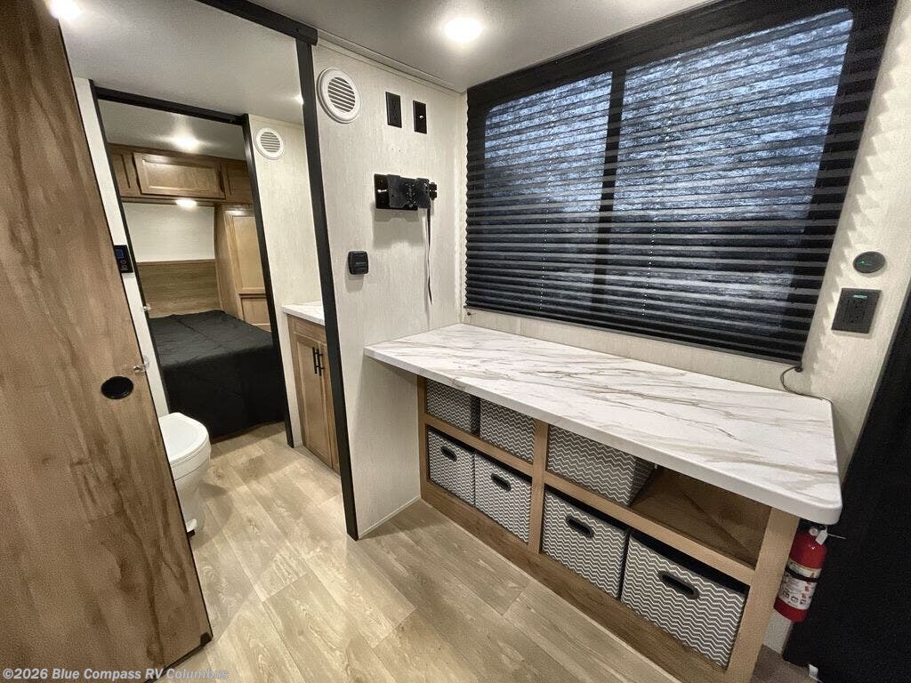 Convenient camping is found with this lightweight travel trailer! Once you arrive at your destination, put out the power awning, then make lunch on the exterior mini kitchen. Inside, you can dine at the bar top with stools, freshen up in the tub/shower, and sleep soundly on the queen bed in the master bedroom. There is also a sofa slide out to provide additional seating, sleeping, and interior space! And you're sure to find plenty of storage spaces both inside and outside, including a rear storage rack!