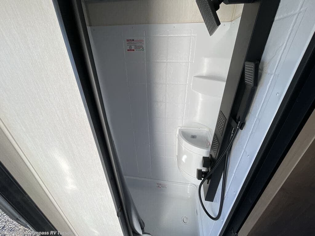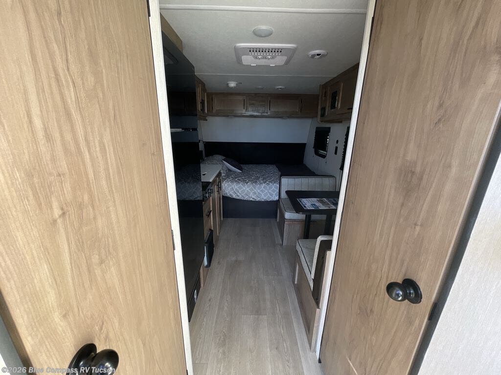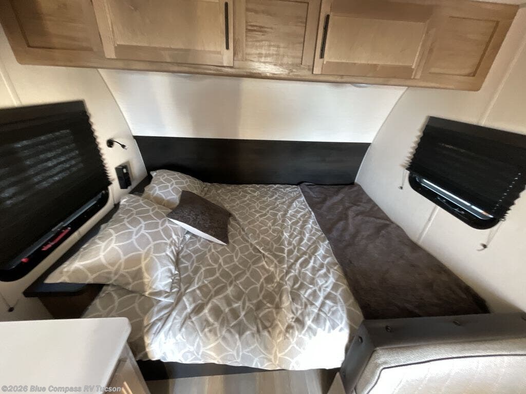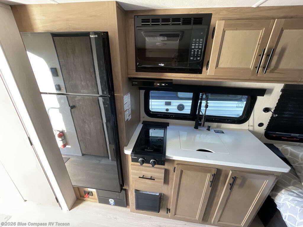 There are lots of features packed into this 19' travel trailer! The rear entry design creates a split-style bathroom for one person to use the private toilet while another freshens up in the private shower. You can prepare your best home cooked meals with the high output cooktop, the 12V high efficiency refrigerator, and a sink to make clean up easier, plus you can comfortably enjoy your meals at the booth dinette with a TV mount location. The front queen bed provides a comfortable place to lay your head at night. Store your outdoor gear in the outside storage area, rinse the mud off your feet with the outside shower, and watch the big game outdoors if you decided to add a television to the outside TV mount!