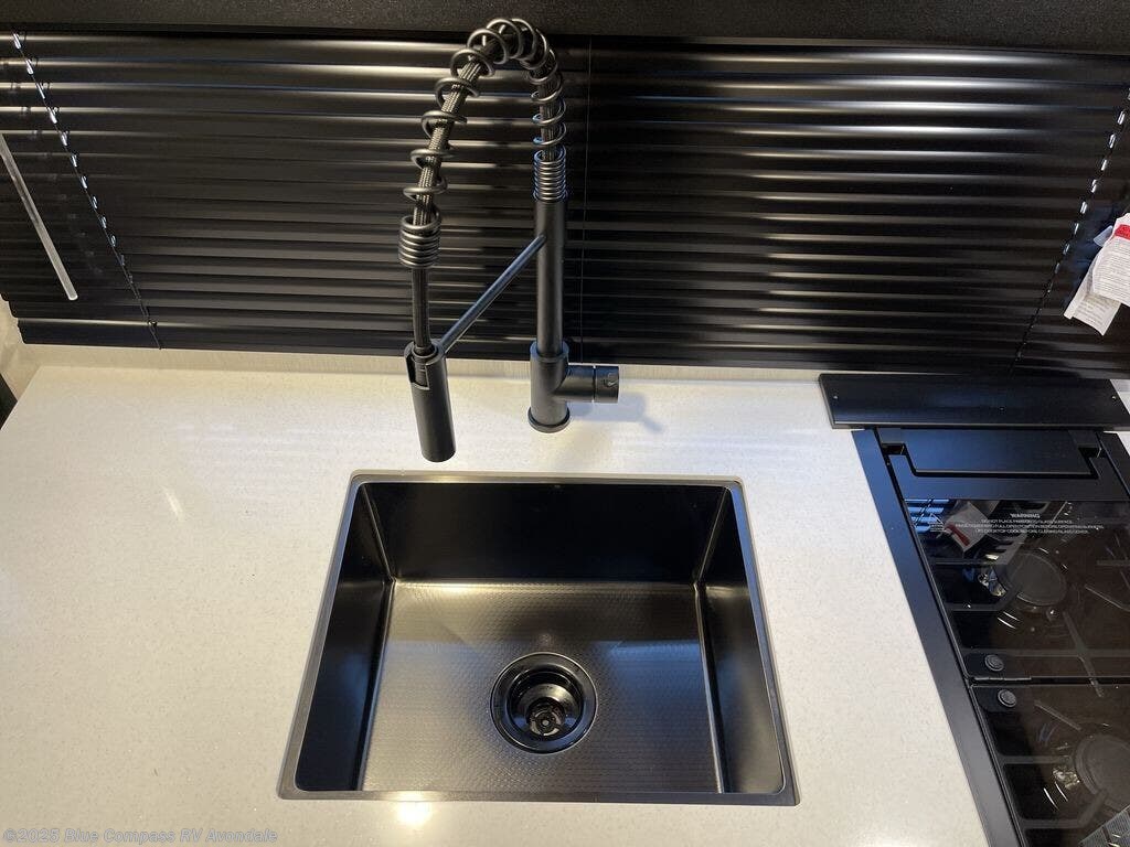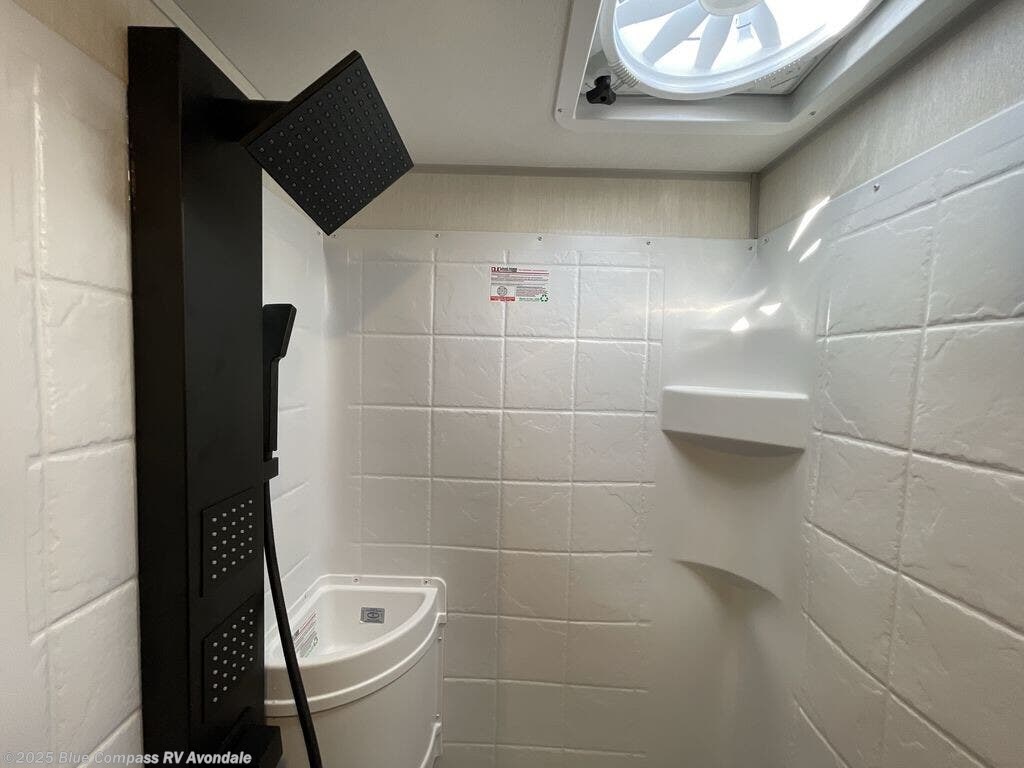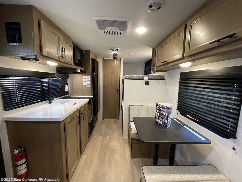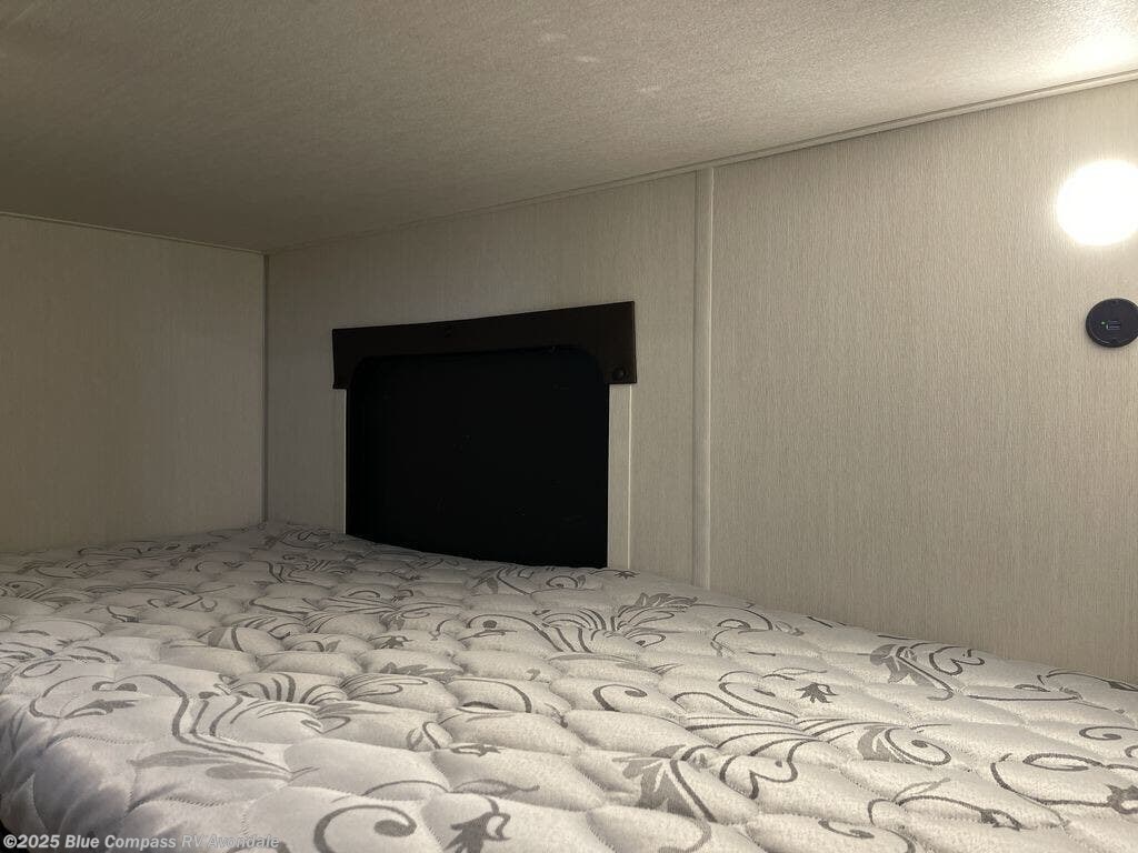 The whole family can sleep comfortably in this travel trailer! It has a set of bunk beds for the kids or guests to sleep on, and you can sleep comfortably on the front queen bed with overhead cabinets and a shelf. There is even an exterior storage plus door that accesses the storage space under the bottom bunk. The chef will enjoy preparing their best home cooked meals either indoors with the high output cooktop or at the outside mini kitchen while staying protected by the 12' power awning!