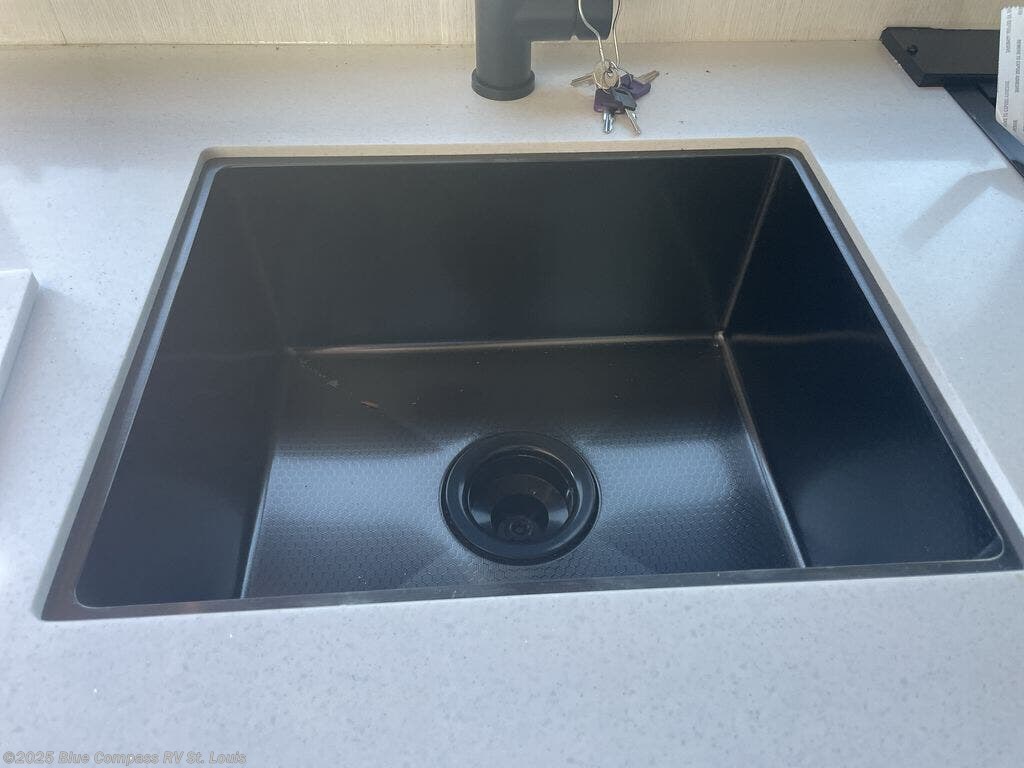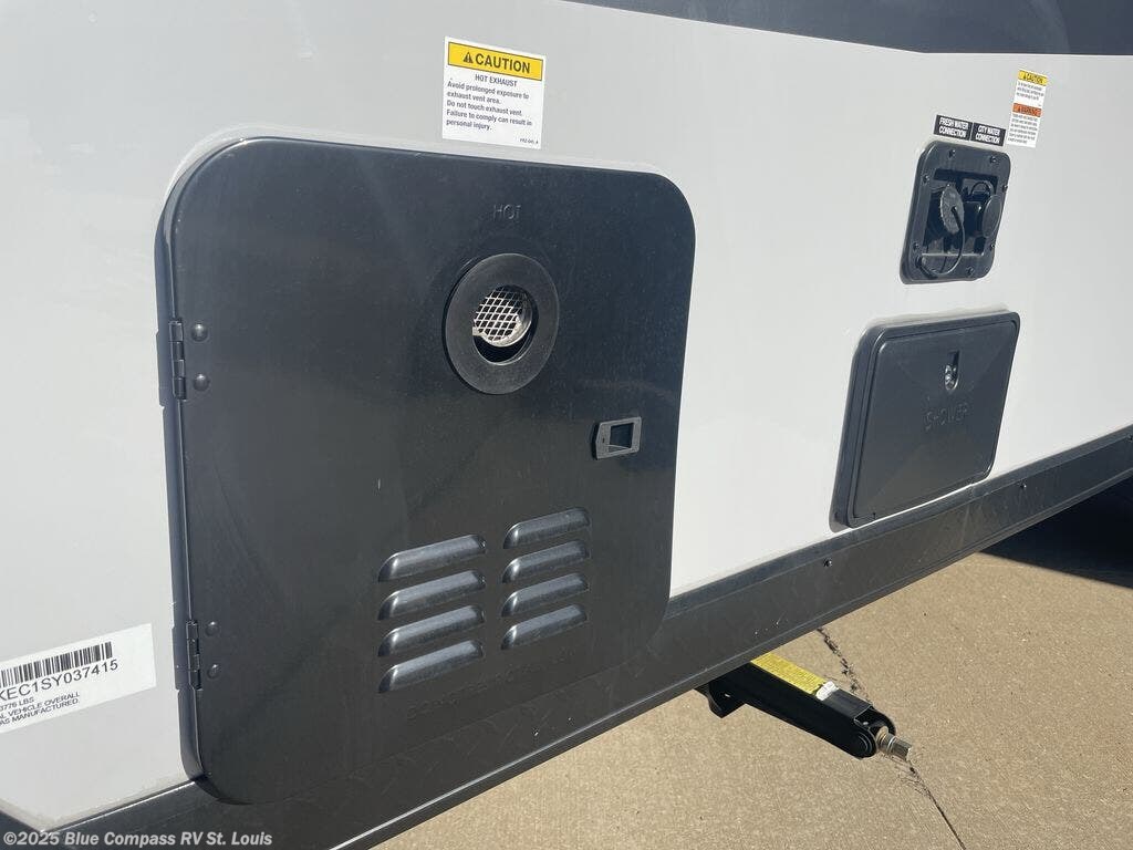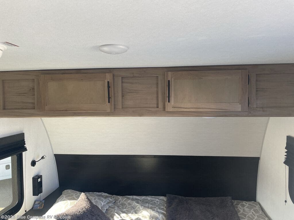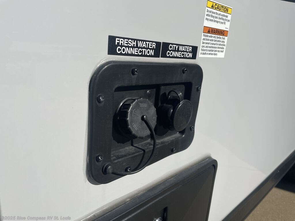 The whole family can sleep comfortably in this travel trailer! It has a set of bunk beds for the kids or guests to sleep on, and you can sleep comfortably on the front queen bed with overhead cabinets and a shelf. There is even an exterior storage plus door that accesses the storage space under the bottom bunk. The chef will enjoy preparing their best home cooked meals either indoors with the high output cooktop or at the outside mini kitchen while staying protected by the 12' power awning!