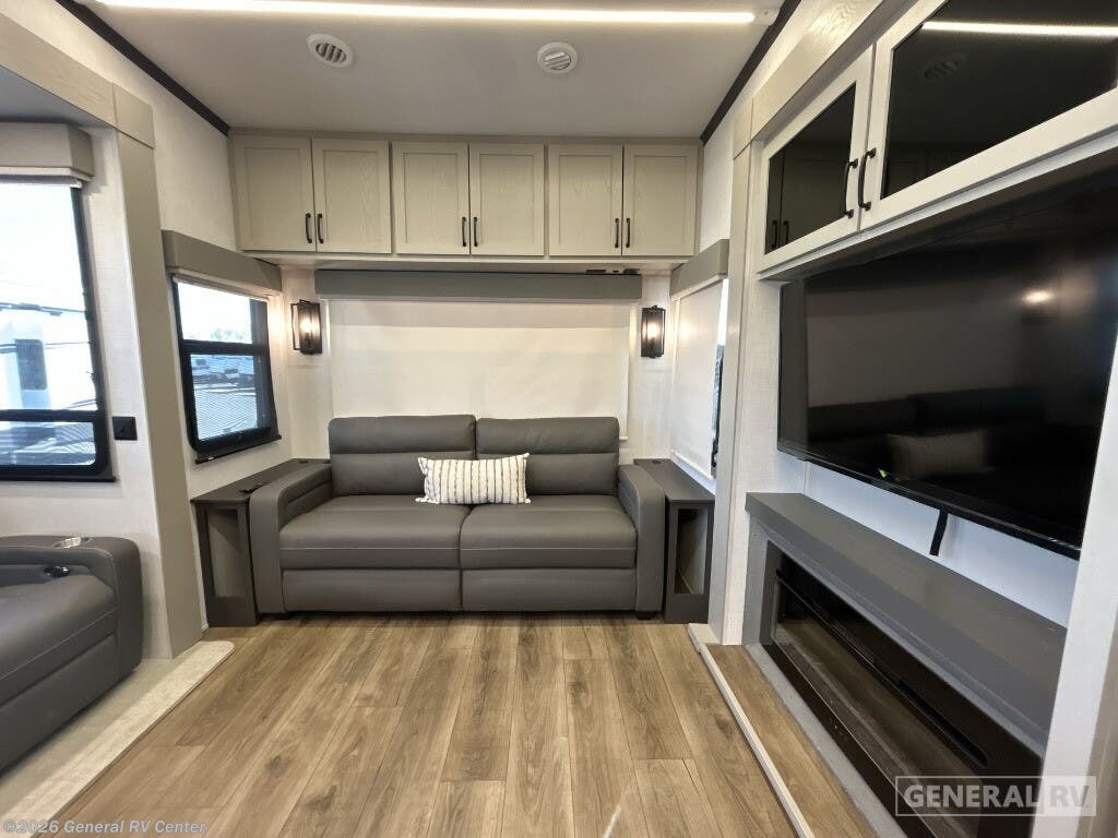 Palomino Columbus fifth wheel 380RL highlights: Two Power Awnings Kitchen Island Table and Chairs King Bed It won't be hard to fall in love with this fifth wheel that can sleep four each night! There are dual opposing slides in the bedroom and in the combined kitchen and living area for maximum space to relax! You will love evenings spent in the rear living area on the theater seat across from the 50" Smart TV, and there is a sofa sleeper to let guests stay over. A four burner gas cooktop and residential style stainless steel microwave will let you cook meals each day, and the table with chairs will be the perfect place to dine together. Head to the full bath that includes a shower with a seat to easily clean up, then head off to bed in the front private bedroom. Here, you'll find a king bed slide out, a bedroom Smart TV, plus a spacious wardrobe with a shelf. Experience a different camping life with residential furnishings and high end features in each one of these Palomino Columbus fifth wheels! The 101" wide body lets you walk around more throughout and the all-welded aluminum-frame superstructure has a snap-in ceiling molding to hold up through every adventure. Don't leave any of your gear behind either when you can easily store it in the climate controlled drop frame storage area. On the exterior, you'll find a heated utility convenience center, an outside sprayer to keep the dirt outside where it belongs, and magnetic compartment door holds to keep them from falling on you as you grab your items. Plus, there are some modern features that will really seal the deal like the Wi-Fi Booster with 4G LTE capability prep, upgraded true solid-surface countertops, power theater seating with USB charging, and a 260W solar panel for off-grid camping!