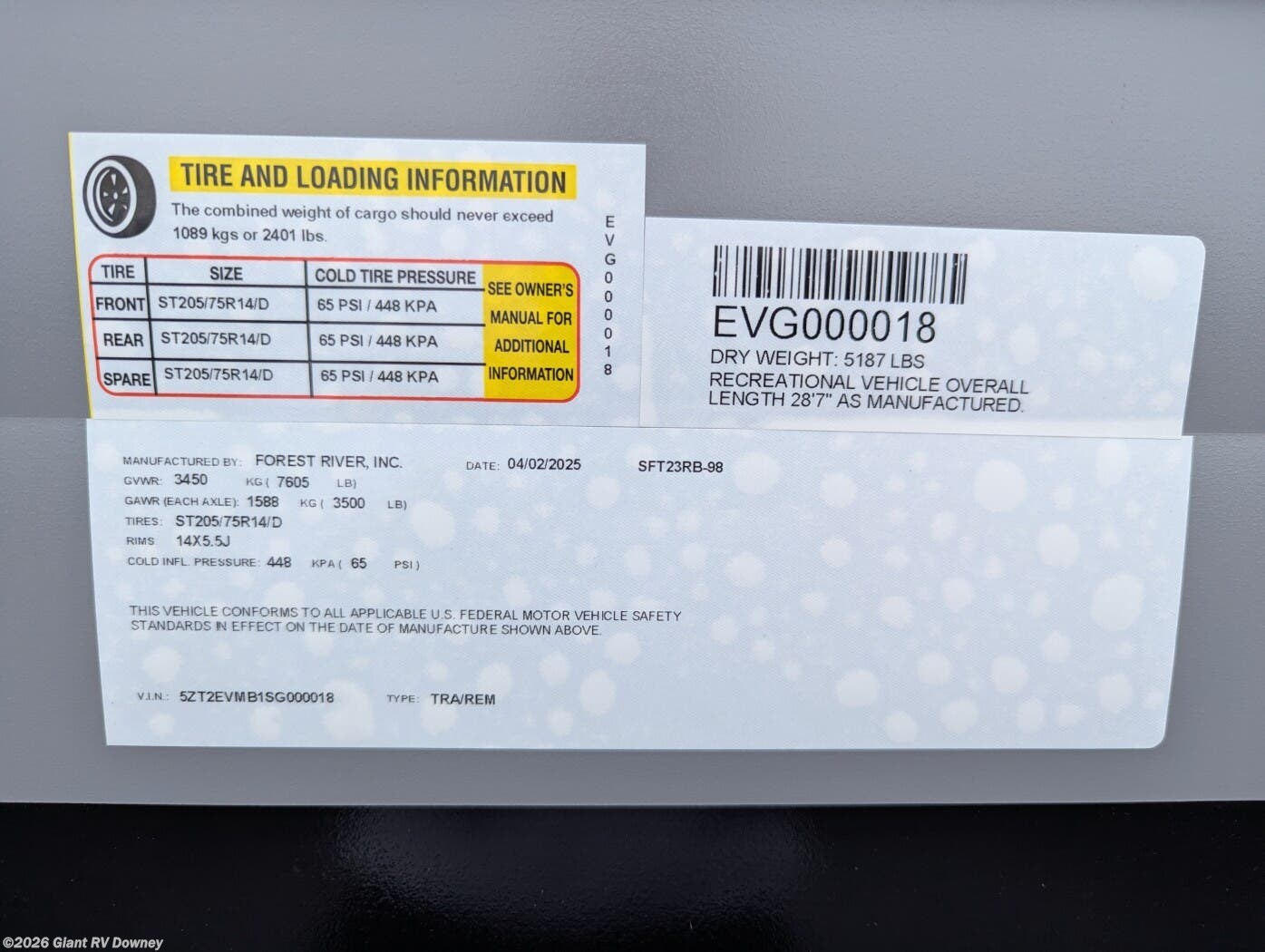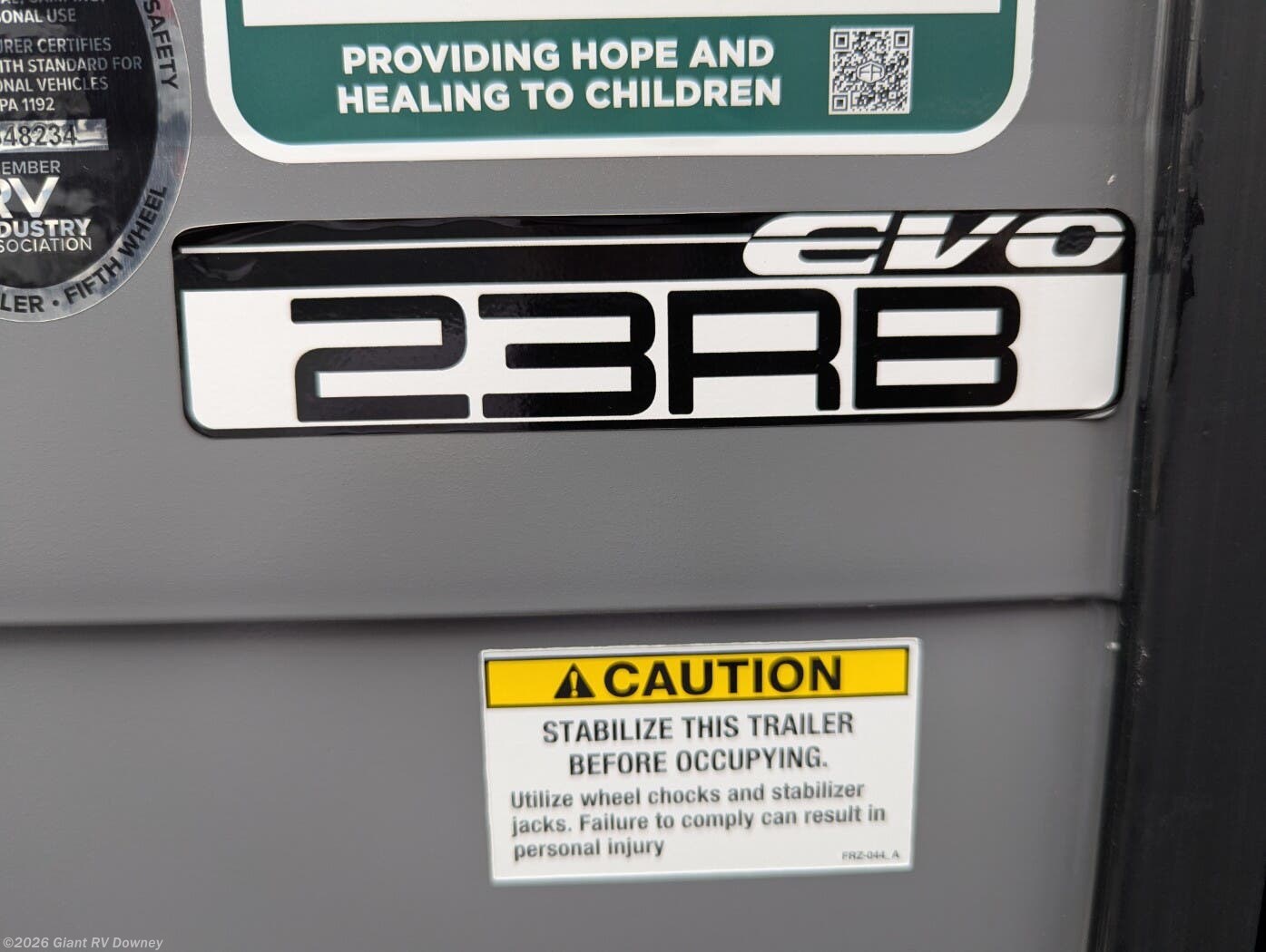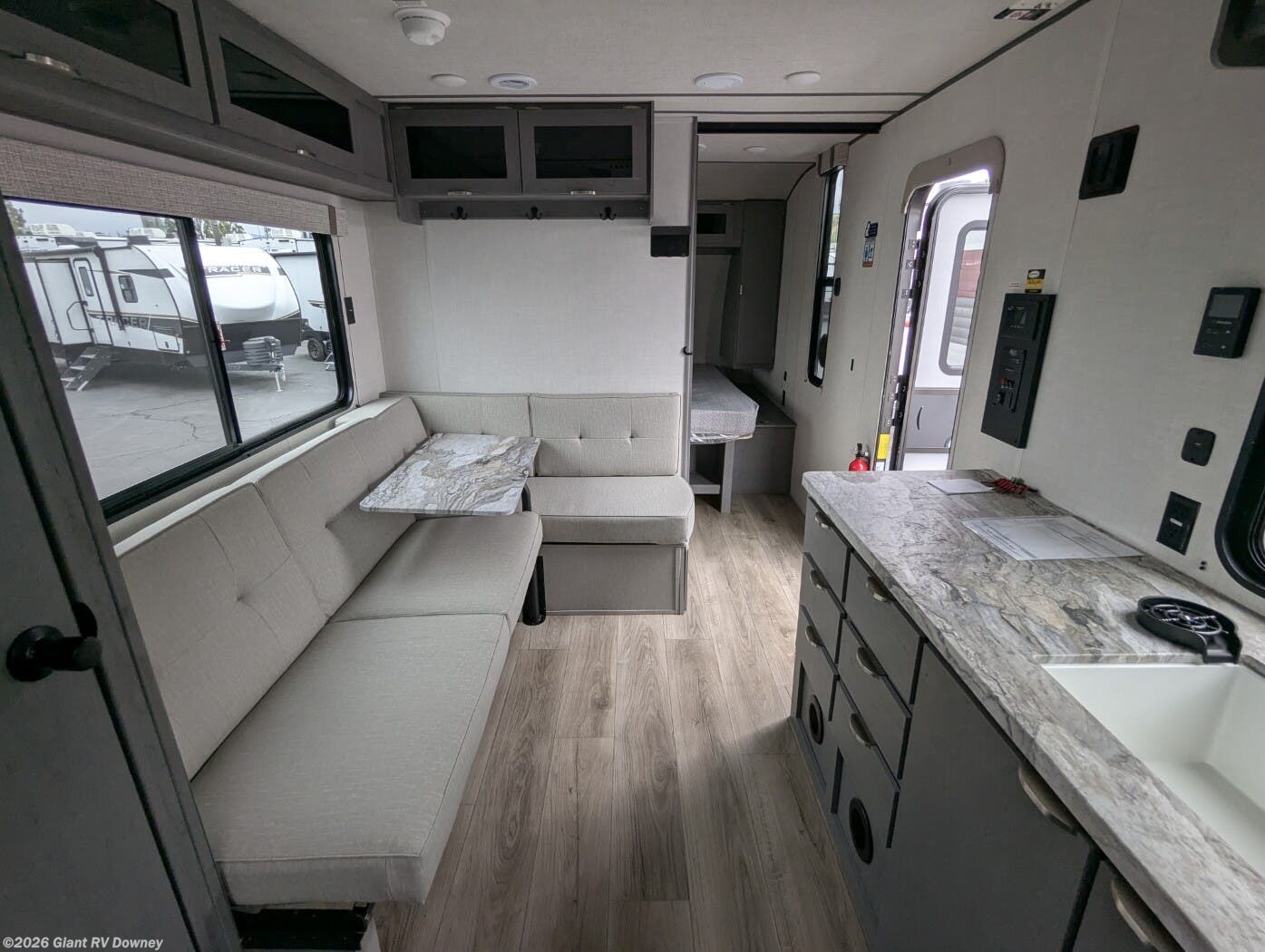Embark on cozy adventures with the 2025 Forest River EVO 23RB Travel Trailer at Giant RV in California, a 28’7” lightweight RV sleeping up to 4, featuring a rear bathroom, a front queen bed, a U-shaped dinette for gatherings, and a kitchen with bar seating. With a seamless roof and 54-gal freshwater tank, it’s built for epic California RV camping!