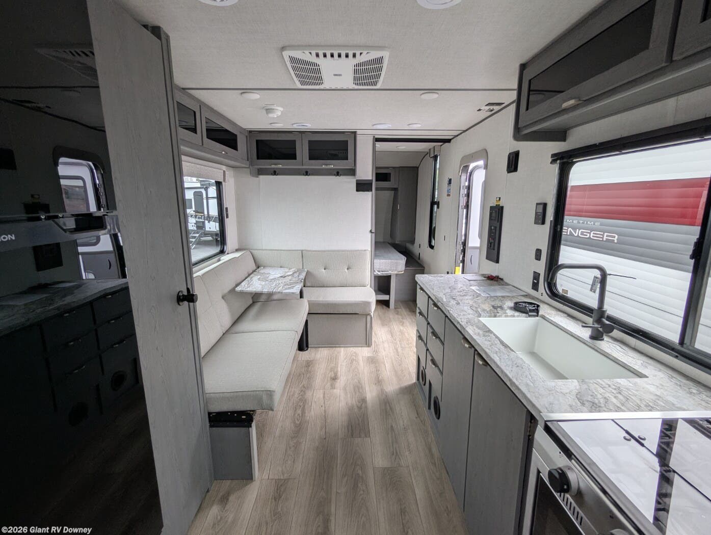 - Central Dinette: U-shaped dinette for RV adventure space