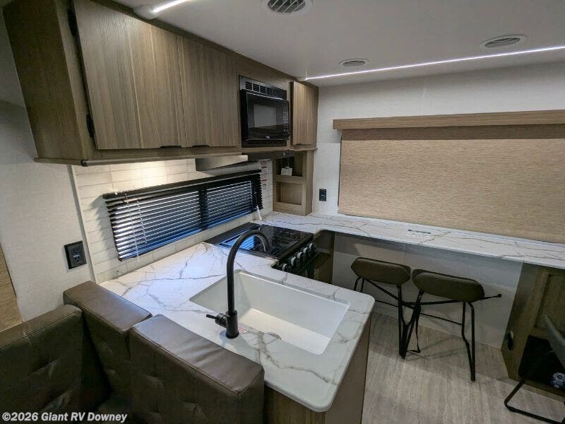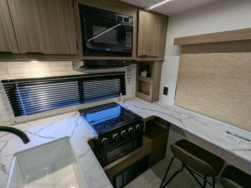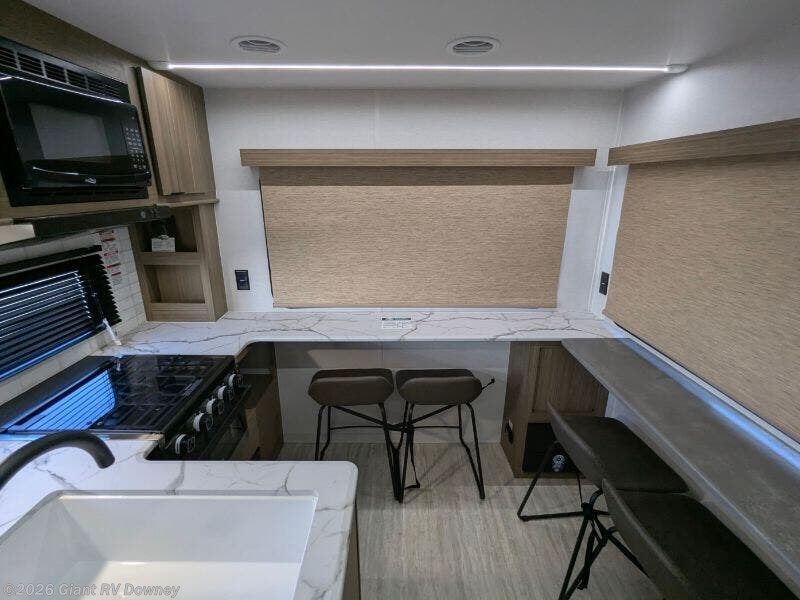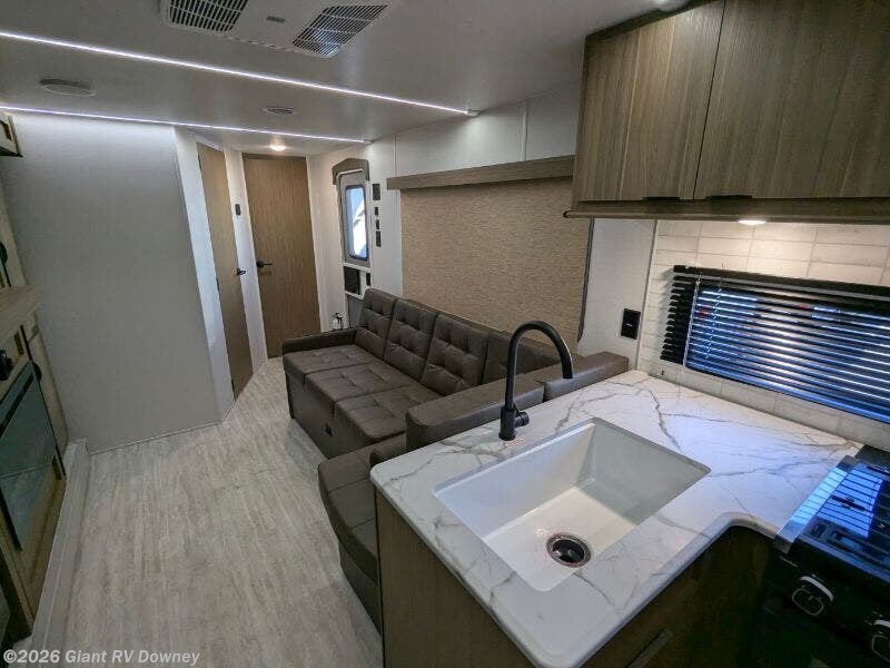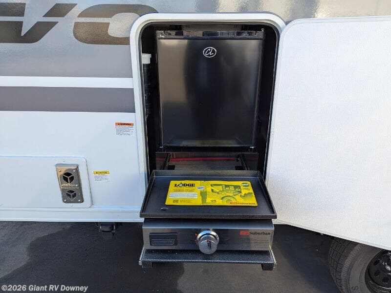 Get ready for culinary adventures with the 2025 Forest River EVO Northwest 2510RK Travel Trailer at Giant RV in California, a 29’7” lightweight RV sleeping up to 4, featuring a rear kitchen with bar seating, a front queen bed, a U-shaped dinette, and a full bath to refresh. With a seamless roof and 61-gal freshwater tank, it’s built for epic California RV camping