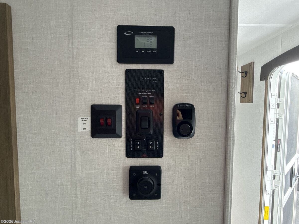 Features Include: Entry Assist Handle, Indoor LED Lighting, Entertainment Center, Versa Lounge (vbm), Pantry, Undermount Sink, Sink Cover, Cooktop, Microwave Oven, Systems Center, Cable TV Hookup, Bluetooth Stereo, Queen Bed, Upgrade Mattress, Overbed Storage, Nightstands, Wardrobes Bathroom, Vanity Sink, Linen Storage, Battery Disconnect, Ducted AC, Black Tank Flush, Power Tongue Jack, EZ Lube Axles, Radial Tires, Stabilizer Jacks