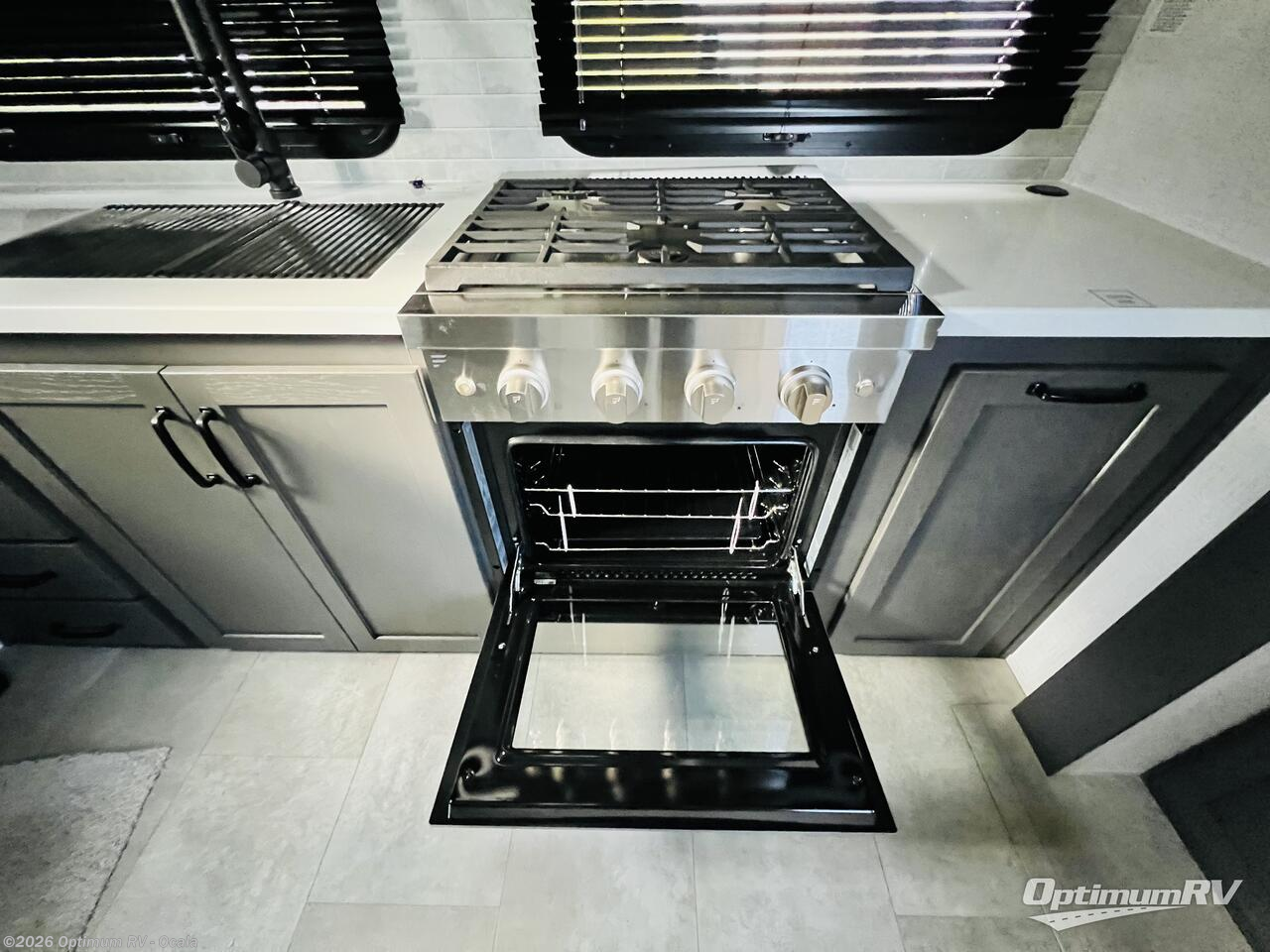 This rear kitchen fifth wheel is the perfect couple's trailer with space for an overnight guest on the booth dinette. There is a front private bedroom with a queen bed where you'll get a great night's rest, and in the morning you can relax on the theater seat with your coffee. The chef of your group will appreciate ample counter space to prep meals, and if the weather is nice, you might want to take your plate outdoors to eat under the 20' power awning.