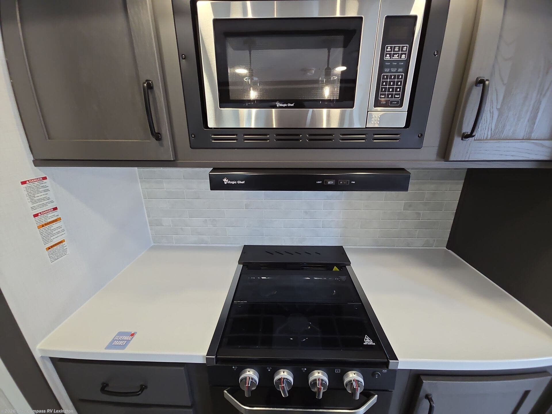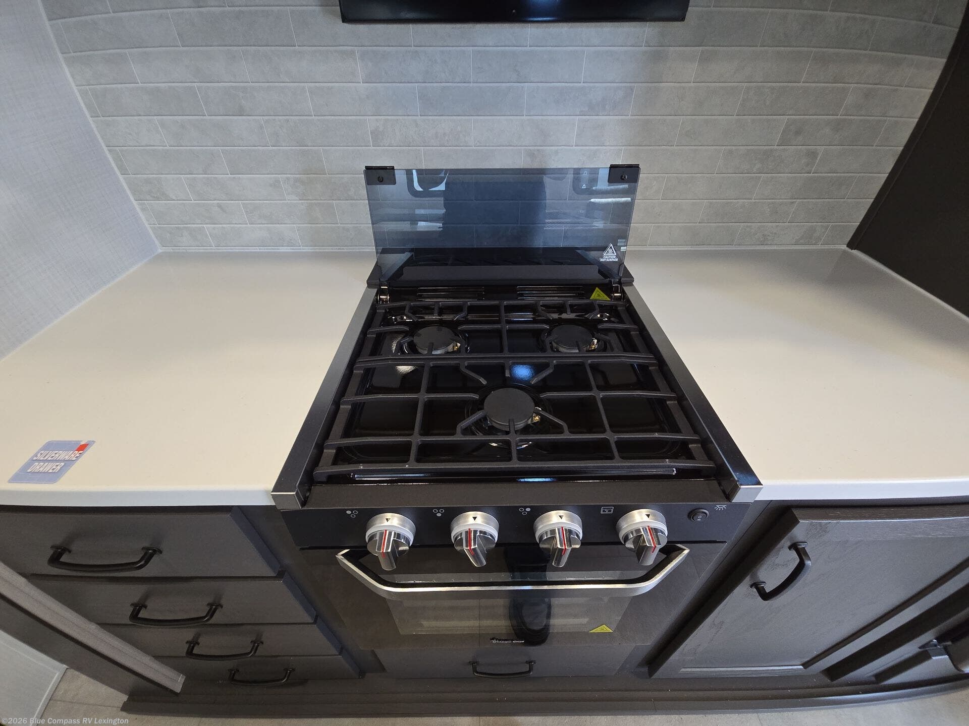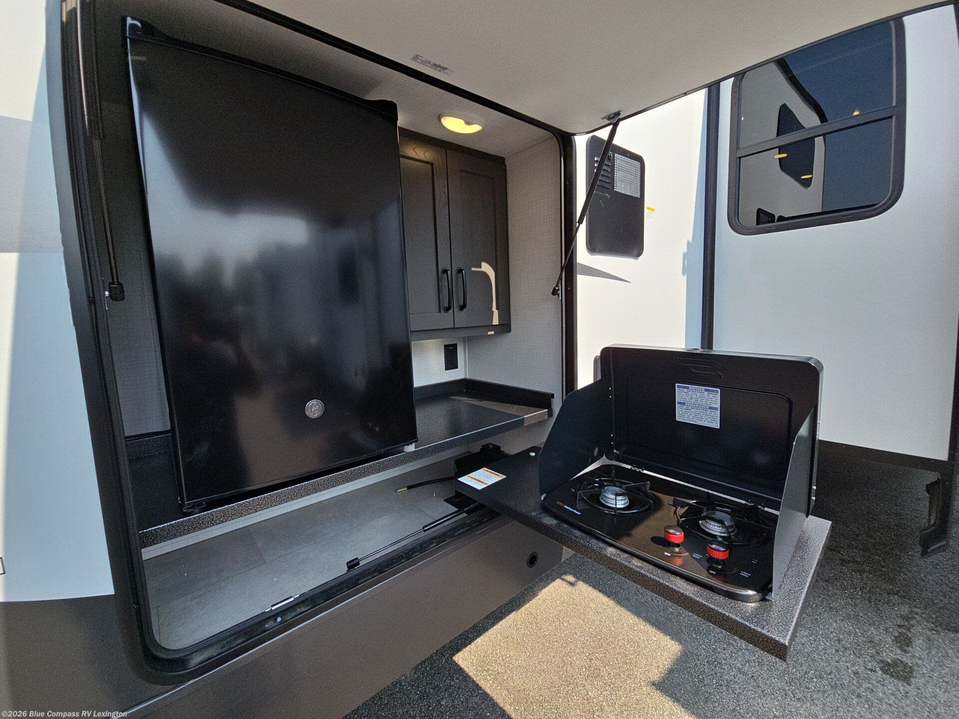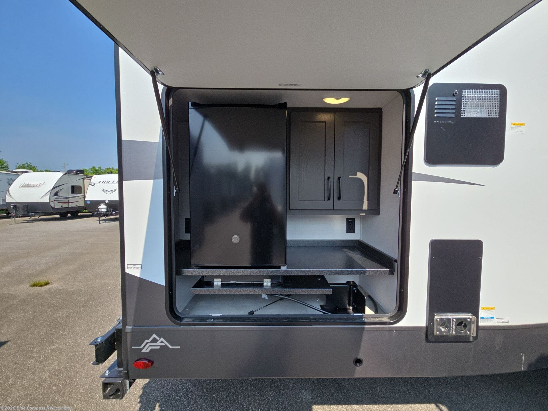 The whole family will love camping in this travel trailer! The kids have their own privacy within the rear bunkhouse that features a 42" x 72" upper bunk with a TV option below it along the curbside, and a flip-up bunk with a 68" pull-out sofa below it along the roadside. After you have prepared a delicious home-cooked meal with the three-burner cooktop and kitchen island, you can head to the 44" x 81" U-shaped dinette where everyone can gather around. You could even prepare dinner at the outside kitchen, set up a table and chairs, and eat underneath the 11' power awning. The 60" hide-a-bed sofa is the perfect place to sit while enjoying the fireplace or watching your favorite movie on the LED TV. A dual-entry bathroom makes it easy for everyone to access especially those staying in the front private bedroom!