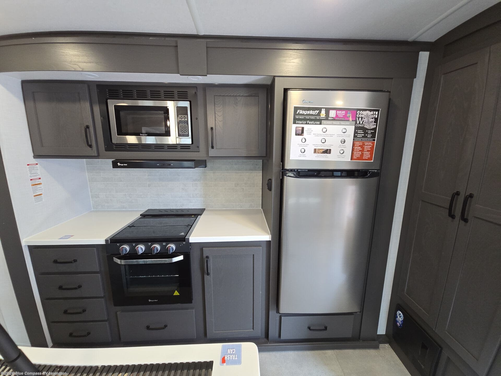 Each one of these Forest River Flagstaff Classic fifth wheels or travel trailers will be your home on wheels! Their quality craftsmanship and attention to detail shines through the enclosed underbelly, the radius roof with vaulted interior ceilings, and six-sided fully aluminum-framed floor, walls, and roof. Towing your unit will be easy with the Goodyear Endurance tires plus a tire pressure monitoring system with a monitor. The interior of each Flagstaff Classic model will have you feeling right at home with Sedonwood cabinetry, soft closing drawer slides, reading lights in the bedroom, plus many more comforts.