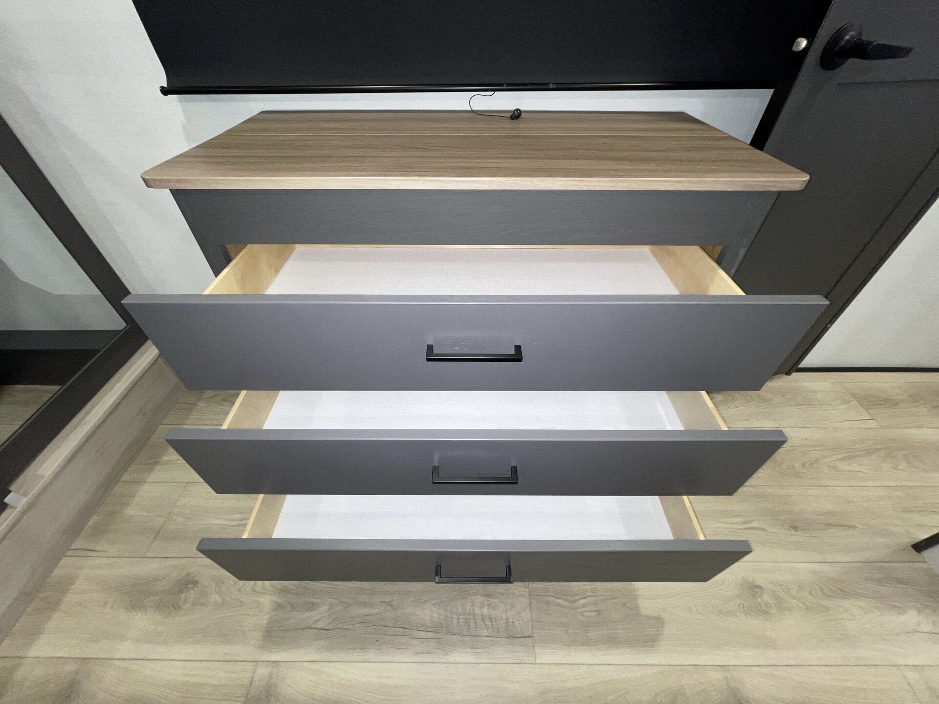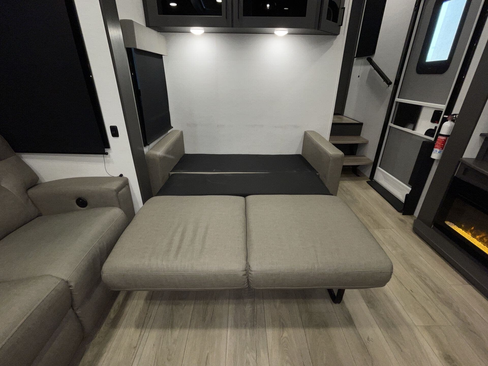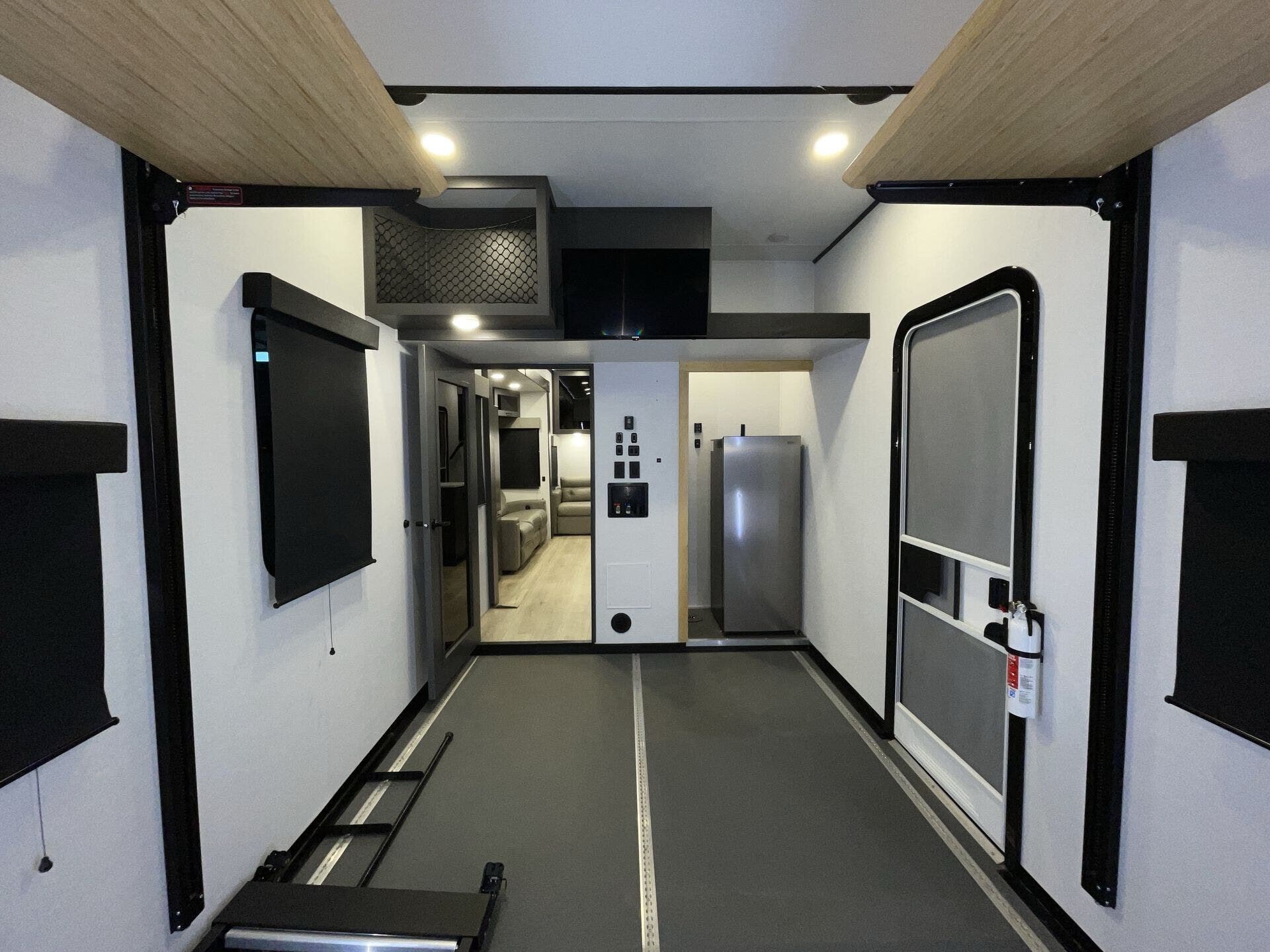 - 13’ garage with HappiJac sofas + drop-down bed