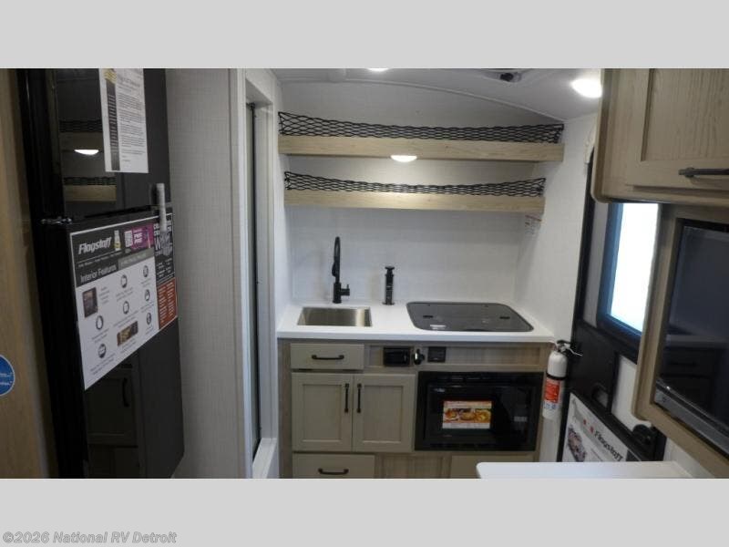 With any Flagstaff E-Pro travel trailer by Forest River, you will experience lightweight towing, style and features that will meet your needs, plus amenities that give you more than you expected! Built with interior and exterior composite sidewall construction, tongue and grove plywood flooring, and a vacuum laminated roof and walls, plus torsion axle, Rubber-Ryde suspension, and a tire pressure monitoring system for safety while traveling. And the 200 watt roof mount solar panel with 1,800-watt inverter will allow you to stay off-grid if you like. The interior offers a comfortable environment with the choice to use the air conditioner or furnace, and a 12V entertainment TV with a stereo to stay up to date on your favorite movies. Make your selection today!