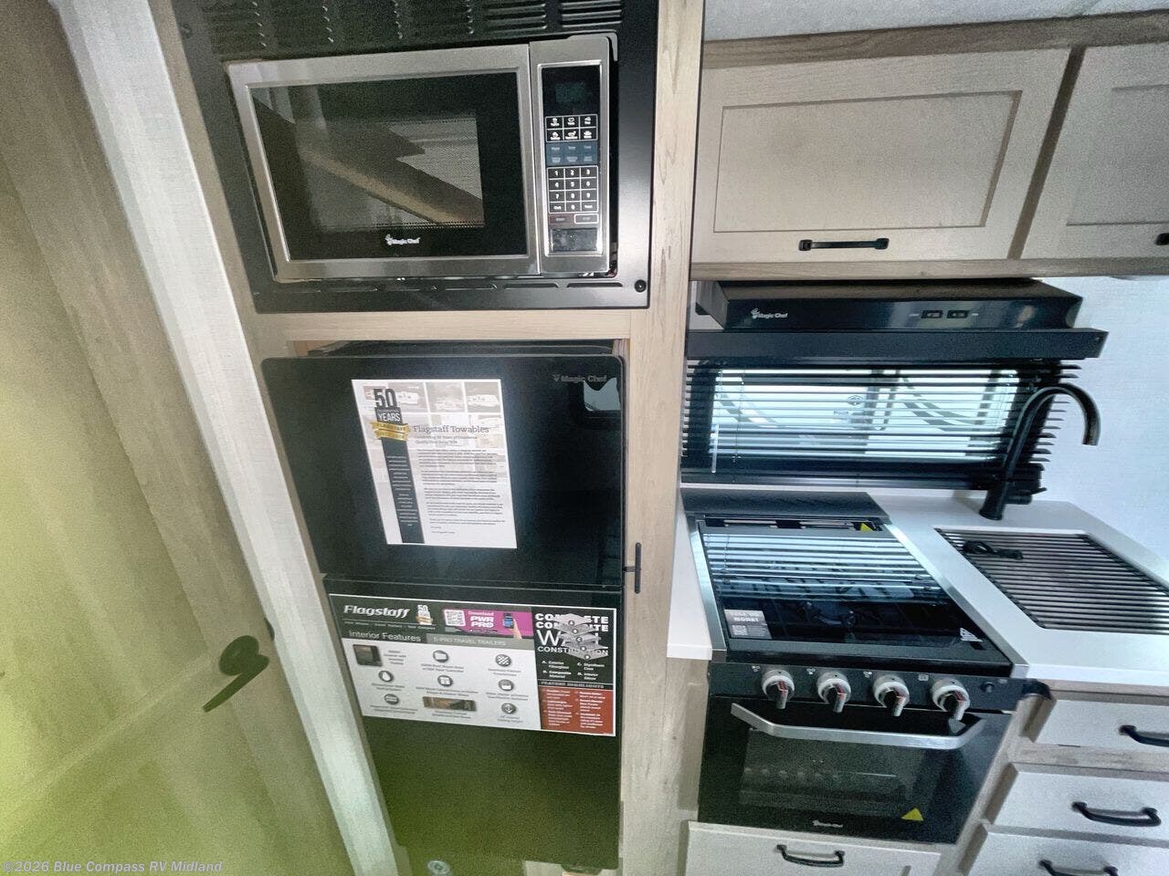 With any Flagstaff E-Pro travel trailer by Forest River, you will experience lightweight towing, style and features that will meet your needs, plus amenities that give you more than you expected! Built with interior and exterior composite sidewall construction, tongue and grove plywood flooring, and a vacuum laminated roof and walls, plus torsion axle, Rubber-Ryde suspension, and a tire pressure monitoring system for safety while traveling. And the 200 watt roof mount solar panel with 1,800-watt inverter will allow you to stay off-grid if you like. The interior offers a comfortable environment with the choice to use the air conditioner or furnace, and a 12V entertainment TV with a stereo to stay up to date on your favorite movies. Make your selection today!