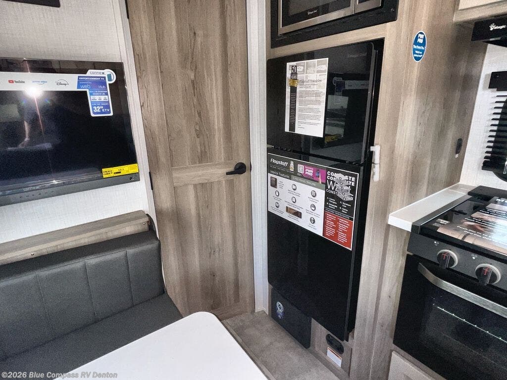 With any Flagstaff E-Pro travel trailer by Forest River, you will experience lightweight towing, style and features that will meet your needs, plus amenities that give you more than you expected! Built with interior and exterior composite sidewall construction, tongue and grove plywood flooring, and a vacuum laminated roof and walls, plus torsion axle, Rubber-Ryde suspension, and a tire pressure monitoring system for safety while traveling. And the 200 watt roof mount solar panel with 1,800-watt inverter will allow you to stay off-grid if you like. The interior offers a comfortable environment with the choice to use the air conditioner or furnace, and a 12V entertainment TV with a stereo to stay up to date on your favorite movies. Make your selection today!