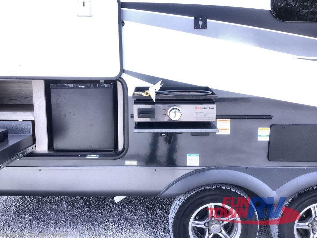 With any Flagstaff Micro Lite travel trailer by Forest River you will enjoy lightweight towing, durable construction, and added interior comforts to make each trip memorable! Each model features a torsion axle, Rubber-Ryde suspension, nitrogen filled, Goodyear Endurance tires, and easy lube axles with Nev-R-Adjust brakes for smooth towing from home to campground. The 6-sided aluminum framed construction provides a strong foundation so you can enjoy your RV for years to come, plus electronically controlled heated holding tanks and an enclosed underbelly will let you camp all year long. Head inside to find hybrid woven flooring in the slide outs, Sedona wood cabinetry, solid surface kitchen countertops, and many more amenities. These travel trailers also include exterior conveniences for hassle-free camping, like the power tongue jack, magnetic compartment door catches, Keyed Alike locks, and rear ladder to name a few!