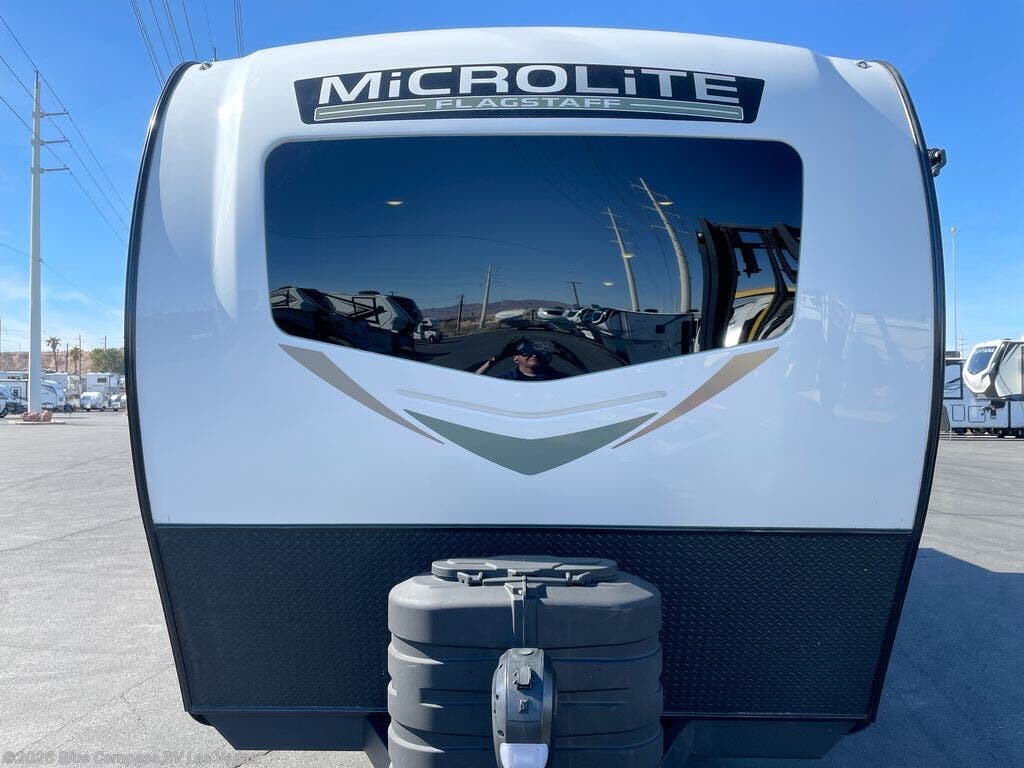 With any Flagstaff Micro Lite travel trailer by Forest River you will enjoy lightweight towing, durable construction, and added interior comforts to make each trip memorable! Each model features a torsion axle, Rubber-Ryde suspension, nitrogen filled, Goodyear Endurance tires, and easy lube axles with Nev-R-Adjust brakes for smooth towing from home to campground. The 6-sided aluminum framed construction provides a strong foundation so you can enjoy your RV for years to come, plus electronically controlled heated holding tanks and an enclosed underbelly will let you camp all year long. Head inside to find hybrid woven flooring in the slide outs, Sedona wood cabinetry, solid surface kitchen countertops, and many more amenities. These travel trailers also include exterior conveniences for hassle-free camping, like the power tongue jack, magnetic compartment door catches, Keyed Alike locks, and rear ladder to name a few!