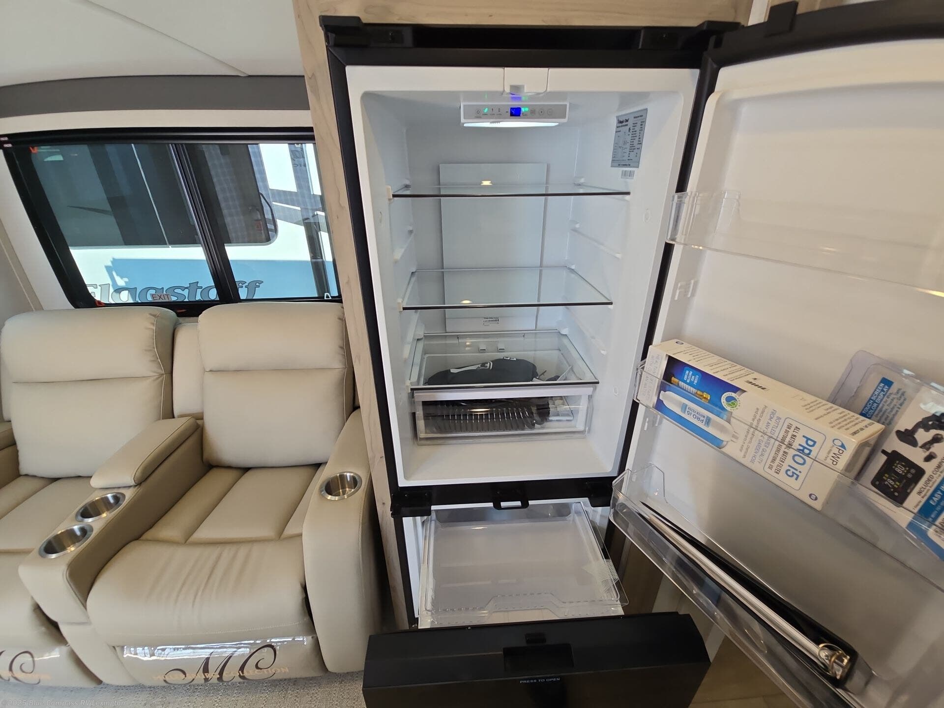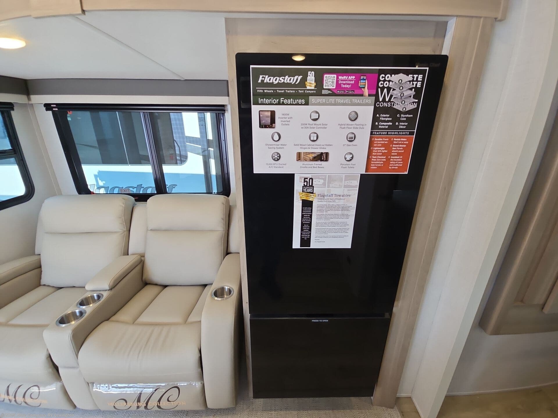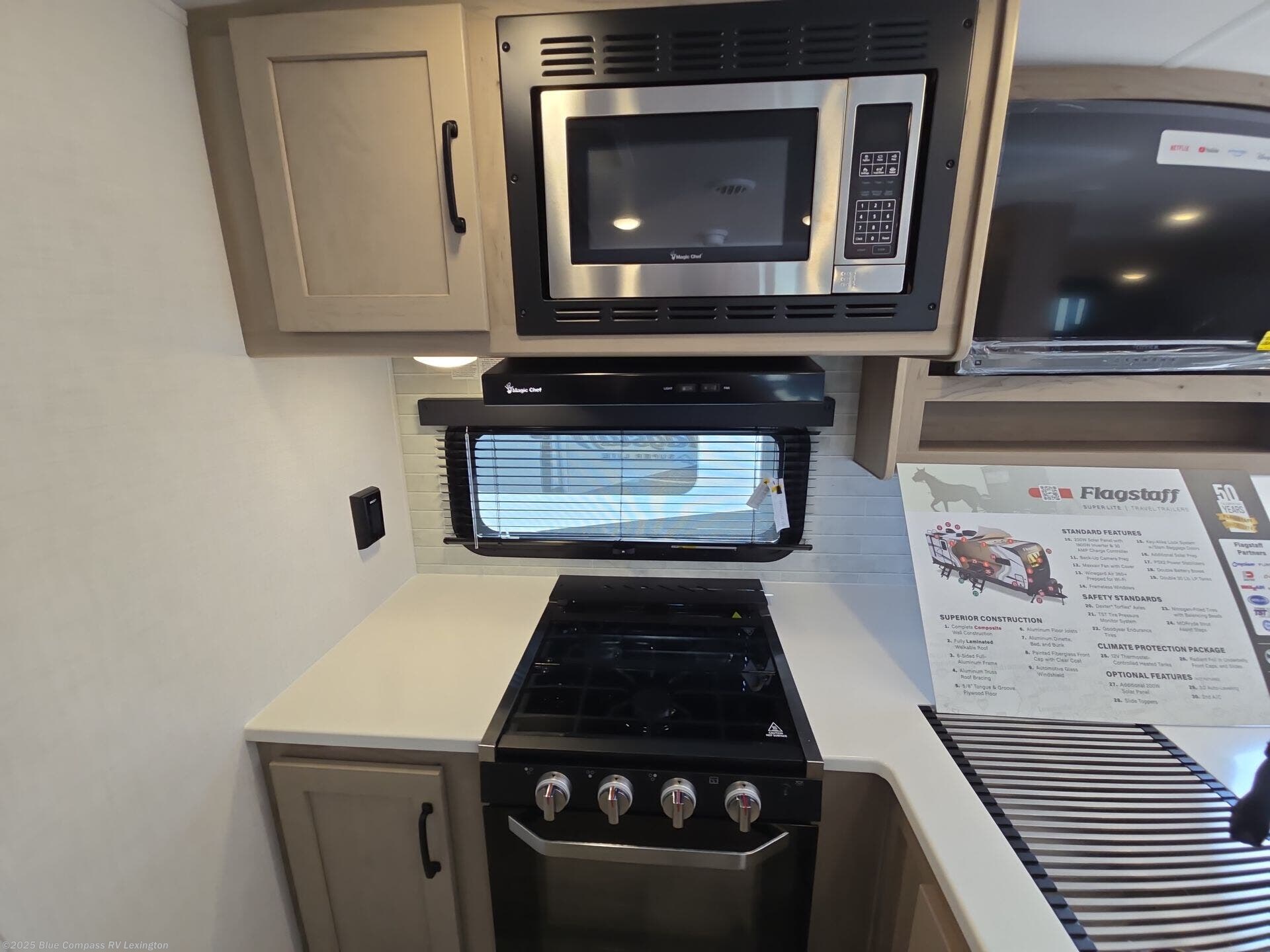 With any Flagstaff Super Lite travel trailer by Forest River the towing features include the TST tire pressure monitor system with a monitor providing safety on the road, Easy Lube axles and Nev-R adjust brakes, a power tongue jack for easy setup, and rear observation camera prep. Each is built with 6 sided aluminum framed side walls, end wall, front, floor and a roof, a plywood tongue and groove subfloor, electronically controlled heated holding tanks and an enclosed underbelly allowing you to travel during any season. The interior includes designer kitchen backsplash, solid surface kitchen countertops, Sedonwood cabinetry, and solid wood cabinet doors and drawers to make you feel right at home.