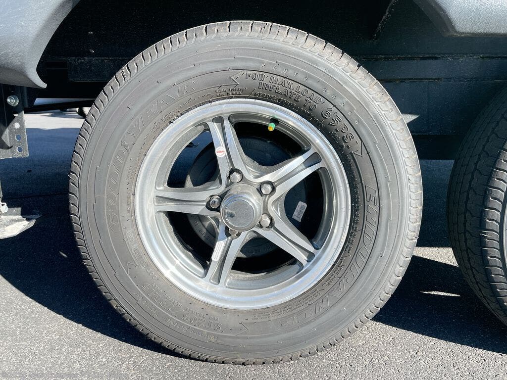 With any Flagstaff Super Lite travel trailer by Forest River the towing features include the TST tire pressure monitor system with a monitor providing safety on the road, Easy Lube axles and Nev-R adjust brakes, a power tongue jack for easy setup, and rear observation camera prep. Each is built with 6 sided aluminum framed side walls, end wall, front, floor and a roof, a plywood tongue and groove subfloor, electronically controlled heated holding tanks and an enclosed underbelly allowing you to travel during any season. The interior includes designer kitchen backsplash, solid surface kitchen countertops, Sedonwood cabinetry, and solid wood cabinet doors and drawers to make you feel right at home.