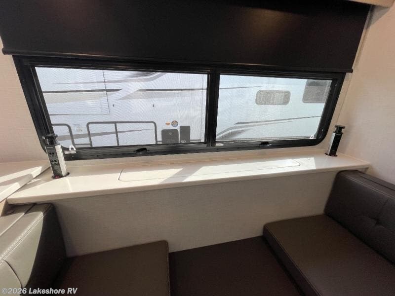 Entertainment & Convenience: Theater seating or hide-a-bed sofa, electric fireplace, WiFi prep, backup camera prep, and 50-amp service.