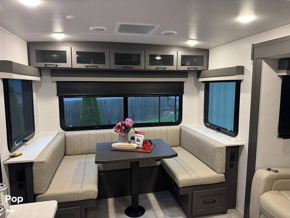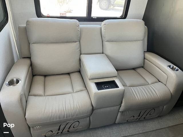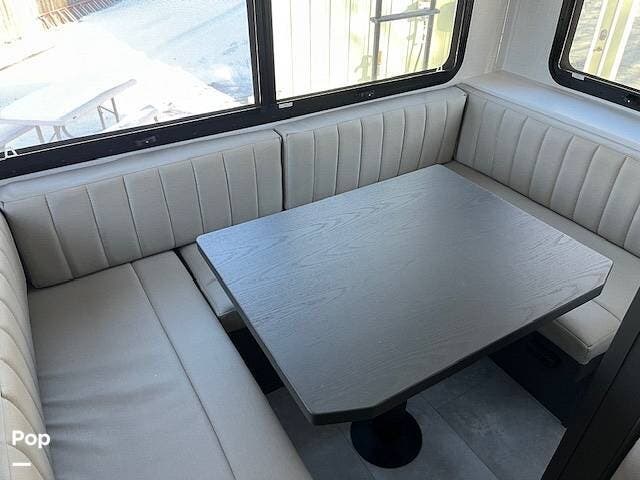 Once inside, you will be impressed by the open floor plan. You have a large 44 x 81 inch convertible dinette and theater seats.