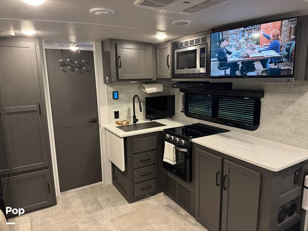 You also have a 12-volt refrigerator/freezer and a large kitchen pantry.
