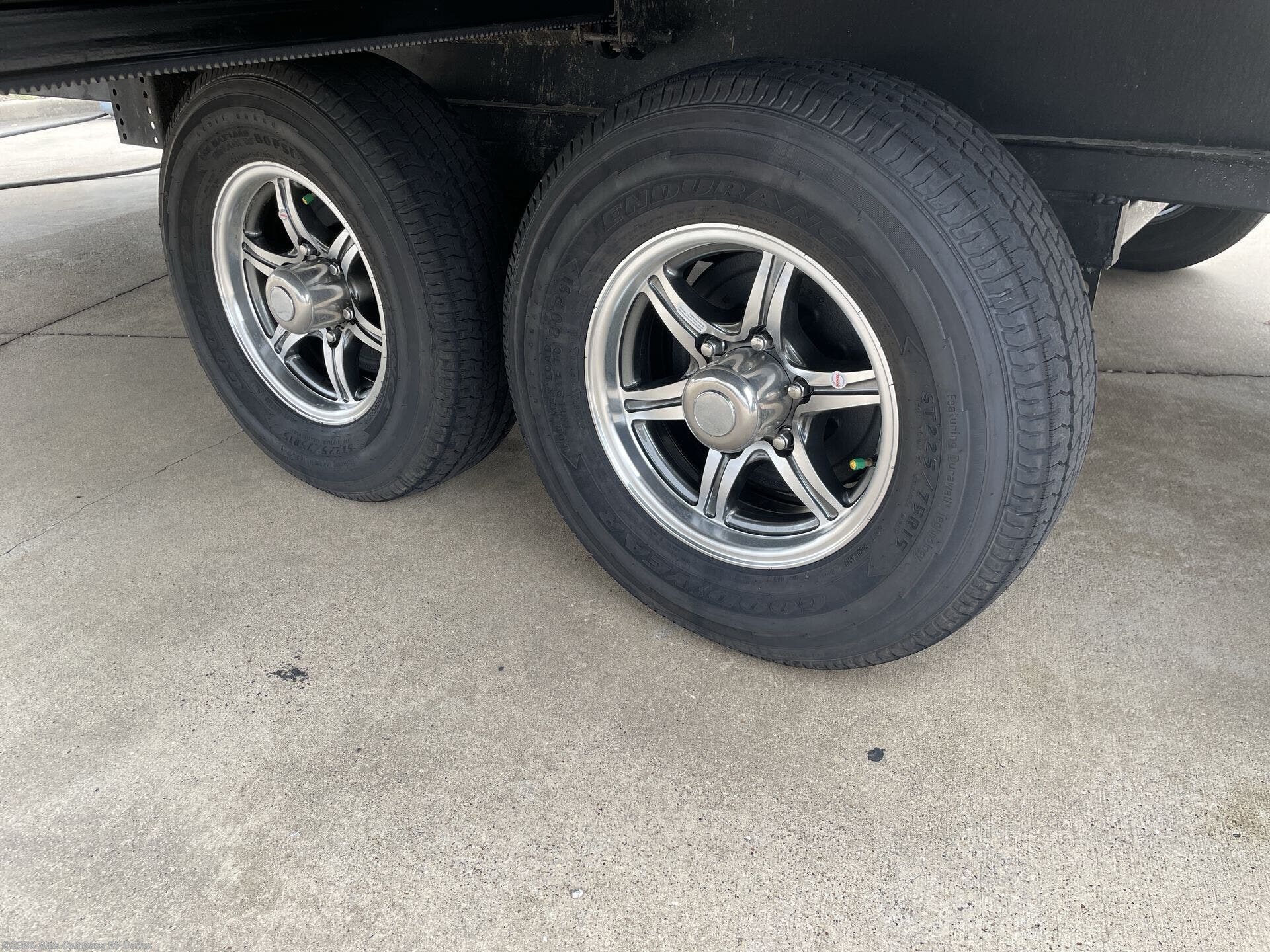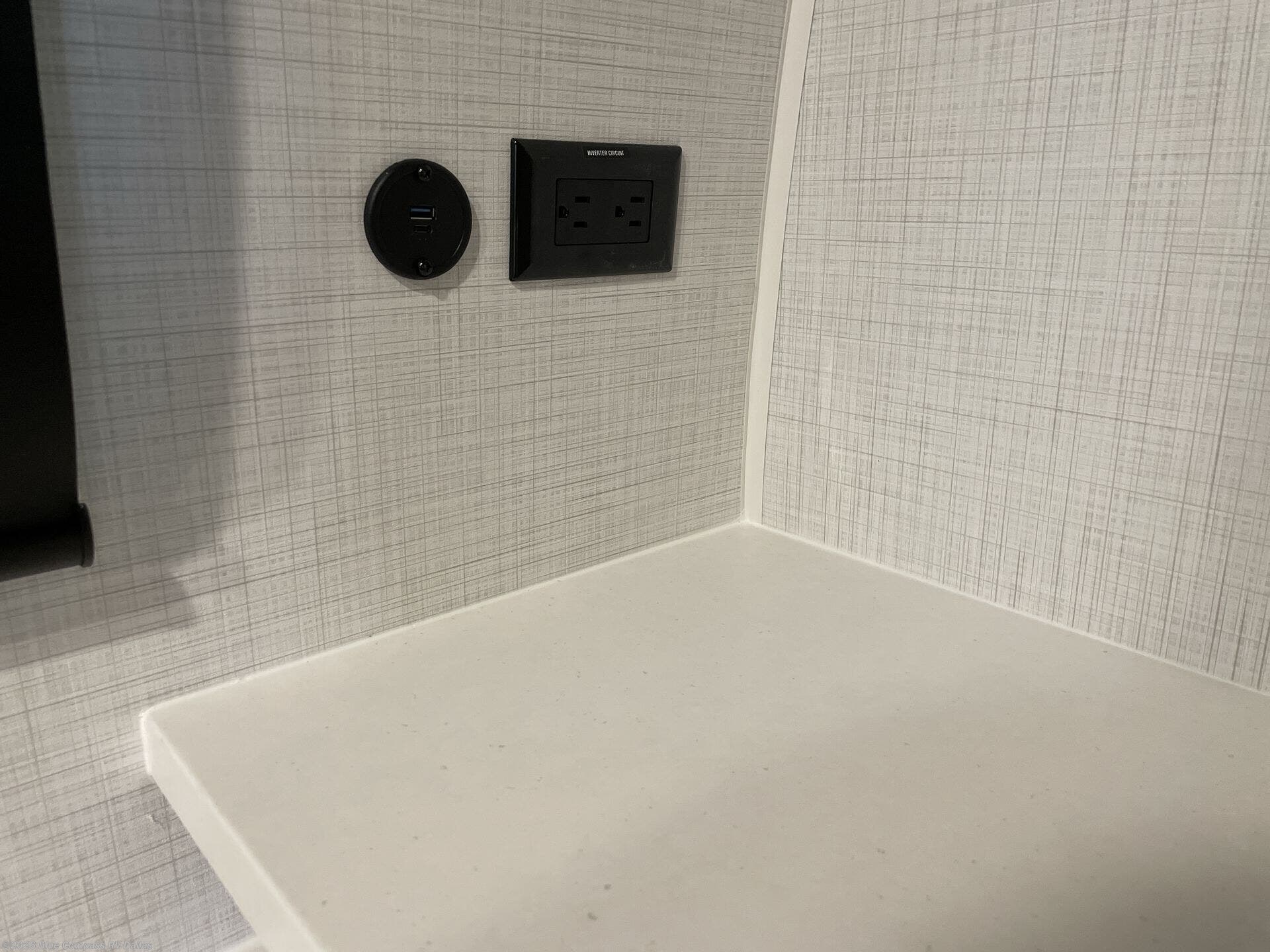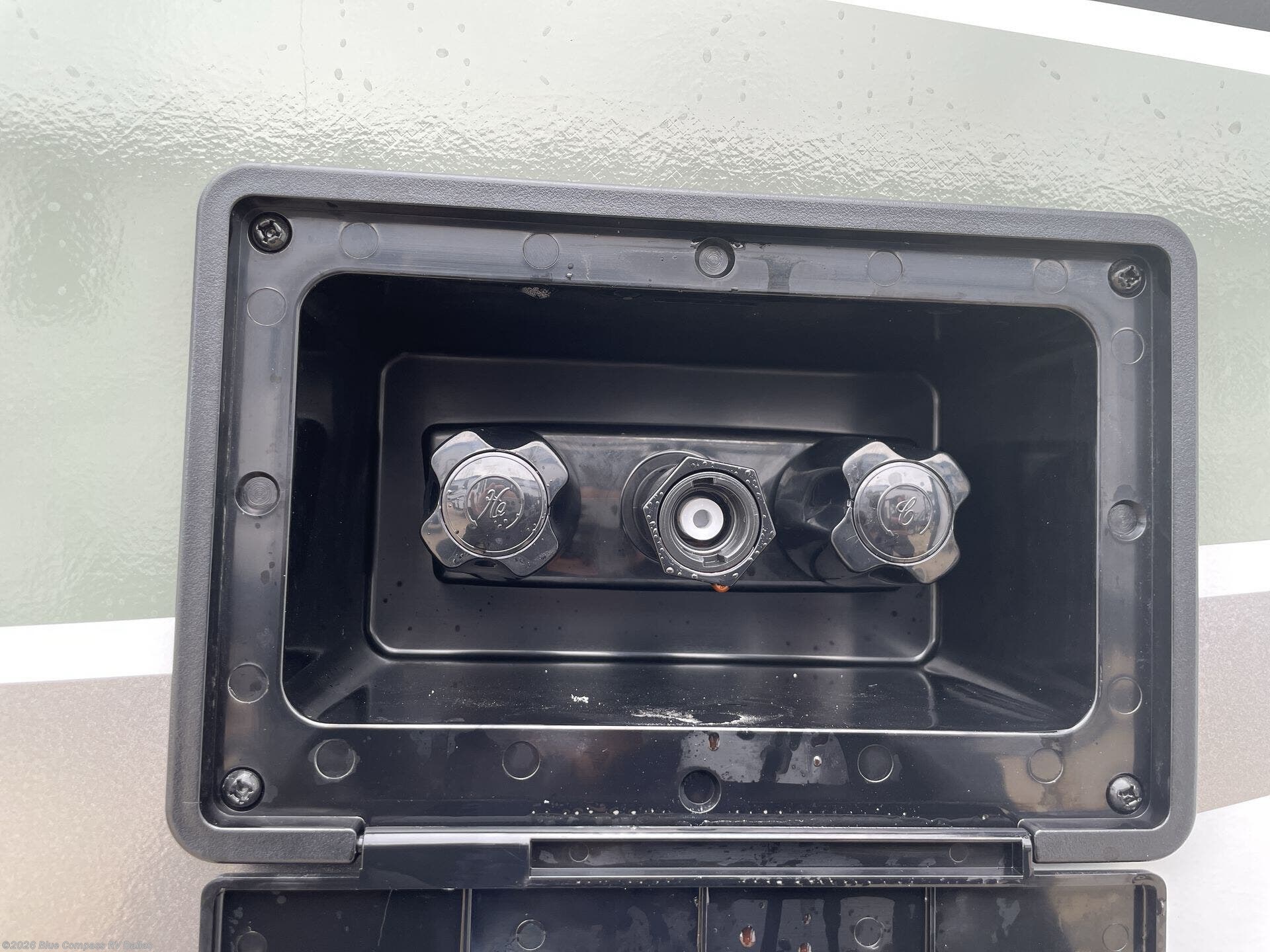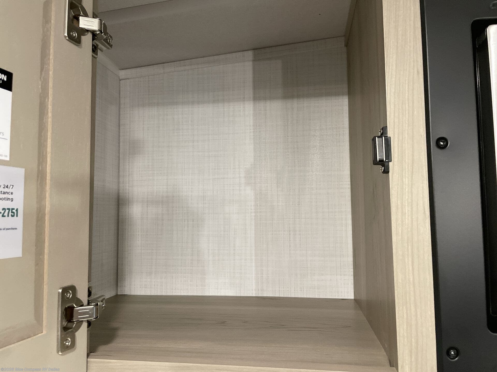 If you enjoy entertaining friends while camping, this trailer offers seating for nine in the combined living and kitchen area on the hide-a-bed sofa, the theater seats and the booth dinette. Everyone can visit, watch the Smart TV and enjoy the fireplace all while the cook is preparing snacks in the kitchen with full amenities. The full bathroom has two entries for convenience, and the front bedroom offers a queen bed slide with a king bed option, plus plenty of storage. And the two 11' awnings offer an outdoor living area after you add your camping chairs.