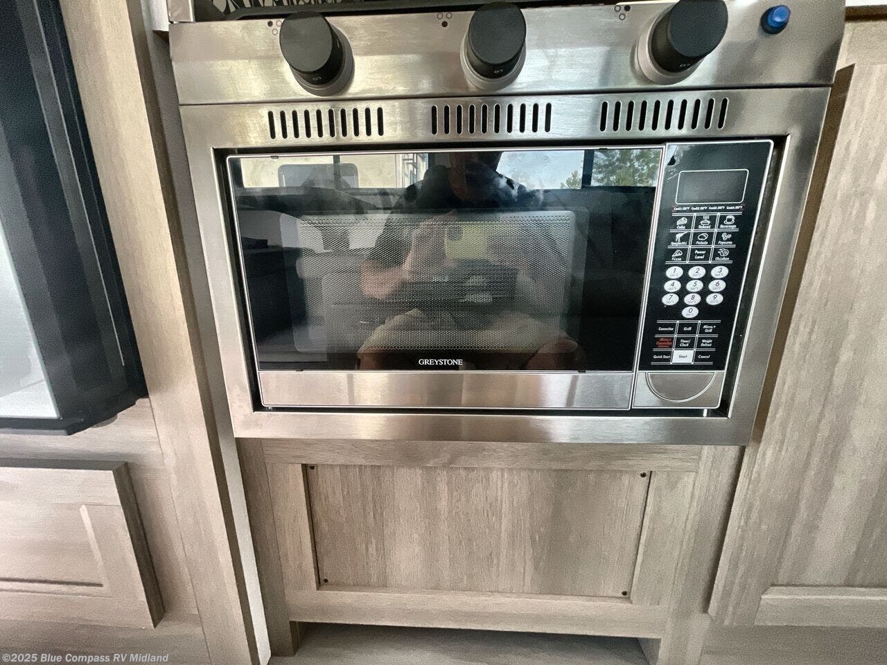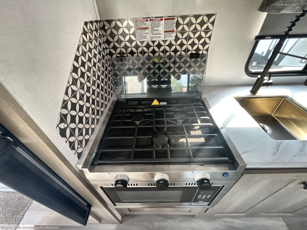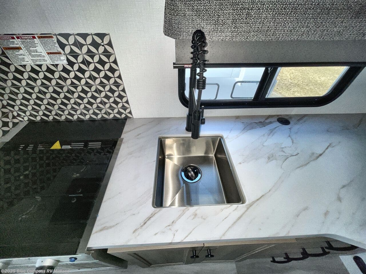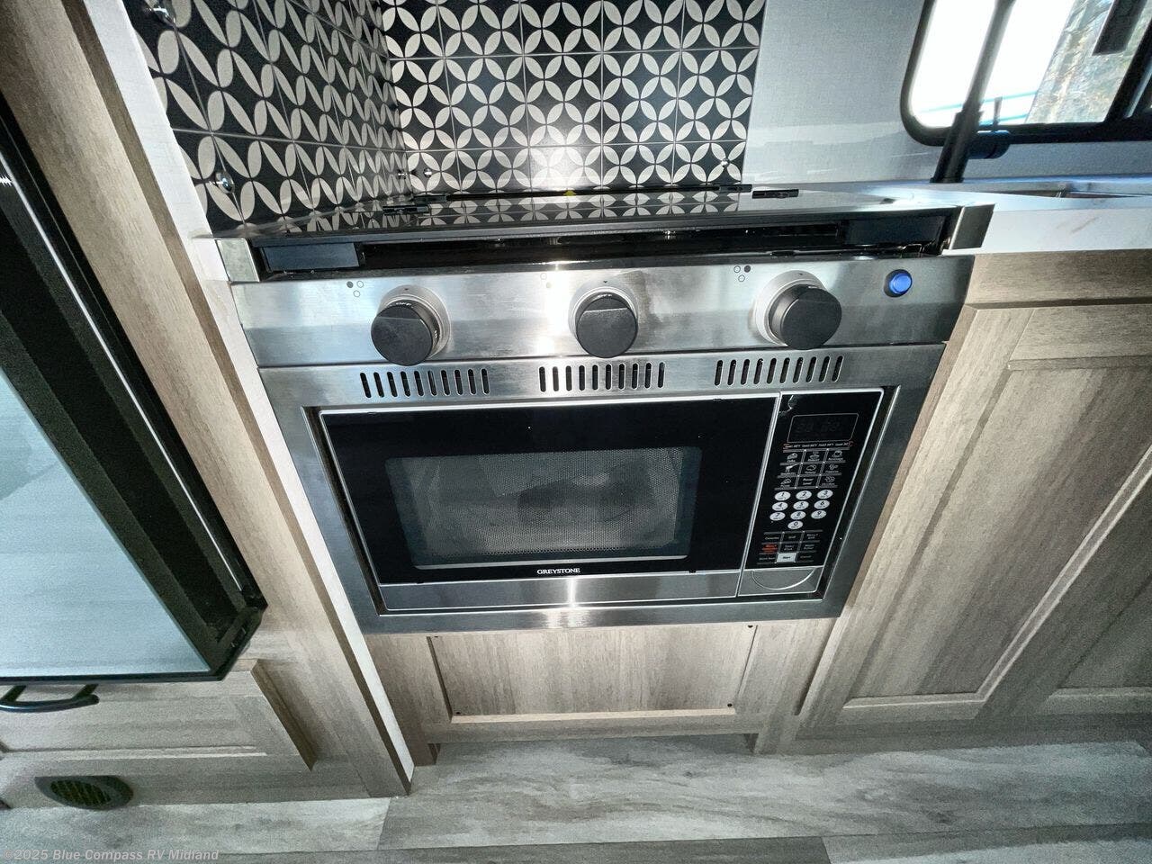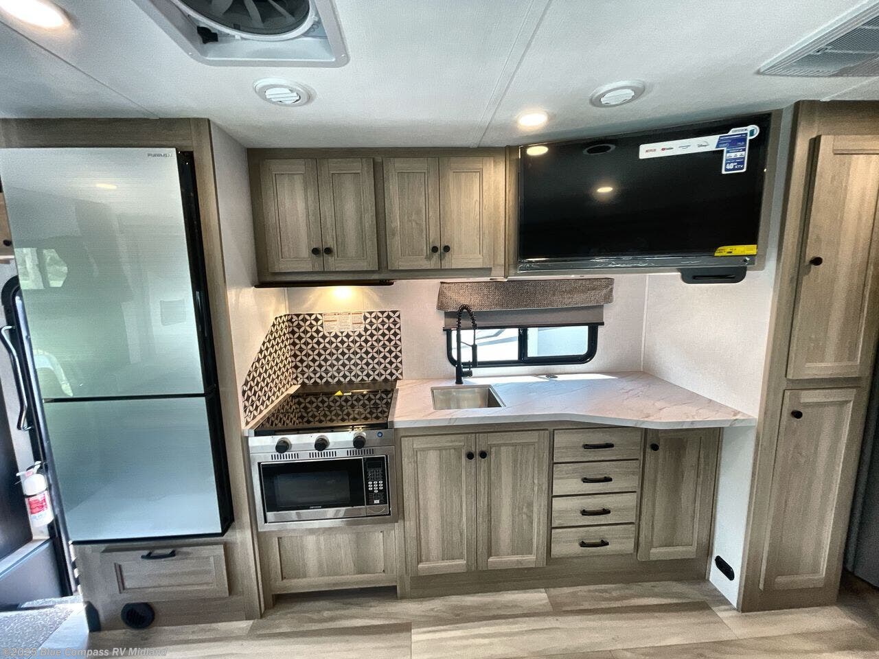 Enjoy trips near and far in this single slide out coach. The kitchen provides a 10.7 cu. ft. 12V refrigerator to store the cold items, a convection microwave and a recessed three-burner range to whip up meals. The private toilet and shower give you a place to get cleaned up, and the bathroom sink is just outside the door. This model includes a queen bed slide out with a wedge mattress, and there is a cab-over bunk for your guests. You can spend your evenings playing cards at the booth dinette, or head outdoors to relax under the 14' power awning with LED lights!