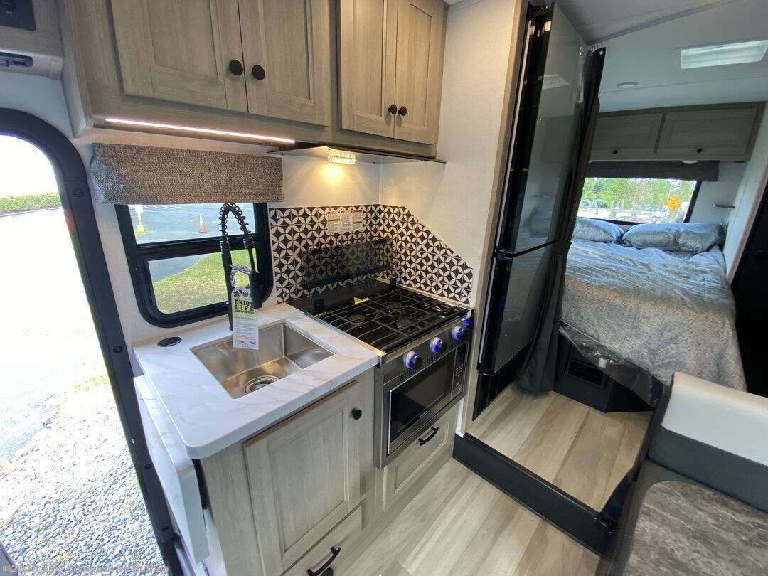 With any Forester LE Class C gas motorhome by Forest River, you will enjoy premier features such as the backup camera/side view cameras with a 3-way monitor, the Winegard Air 360+ digital antenna, and the 15,000 BTU ceiling ducted, ultra quiet roof air with a heat pump when traveling during the warmer months. The exterior includes aluminum framed laminated sidewalls, gel coat exterior fiberglass, a one-piece fiberglass front cap, and slide room toppers. Some of the interior top features are the Maxx Air multi-speed power fan with a cover in the kitchen, the high pressure oxygen infused shower head, and the blackout roller shades for a good night's sleep. Make your selection today!
