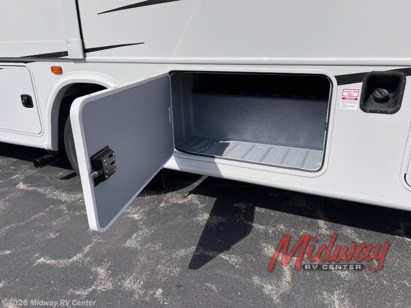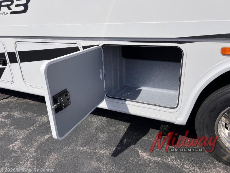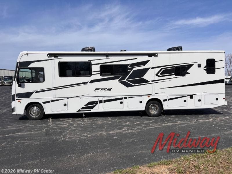 With each FR3 Class A gas motorhome by Forest River, you will find an easy-to-drive coach with a spacious interior allowing you to gather with friends and family with convenience and style found throughout! Each is built with vacuum-bonded construction, a one-piece fiberglass roof with extended rain spouts, a steel firewall and A-pillar extension, Bi-LED headlamps and lower LED fog lights, and grey Rotocast storage boxes with drains. Inside, you will enjoy black hardware, appliances, plumbing fixtures, and a glass shower door frame. You will also find a stainless steel kitchen sink with a bamboo cutting board and roll-up dryer, heavy-duty full-extension ball bearing drawer guides, dual-access dinette storage with doors, and nightstands with charging stations to keep your cellphones ready for whatever is next. Make your selection today!