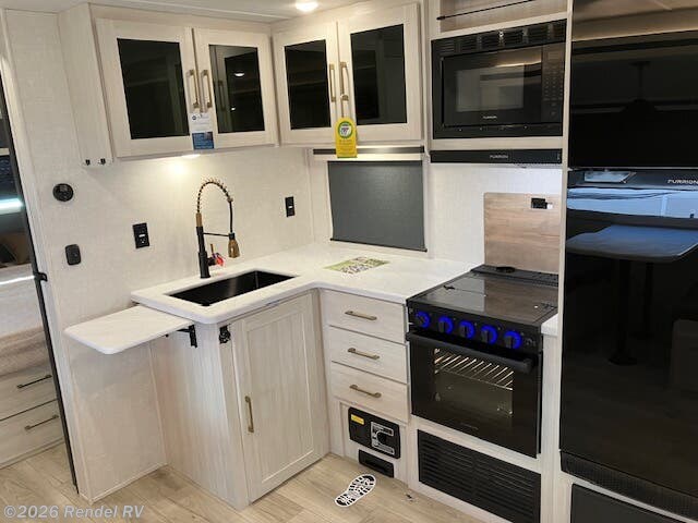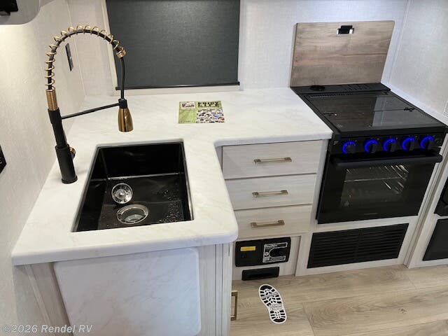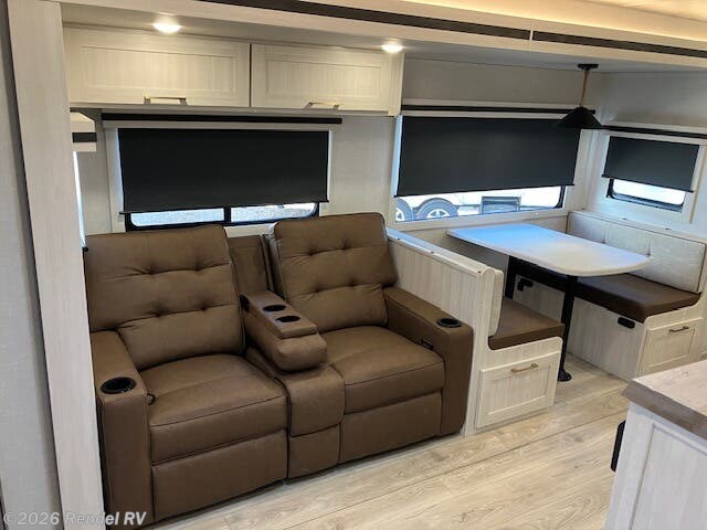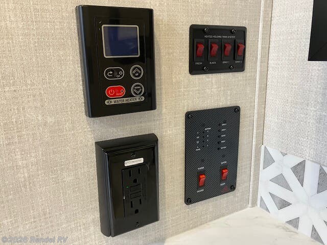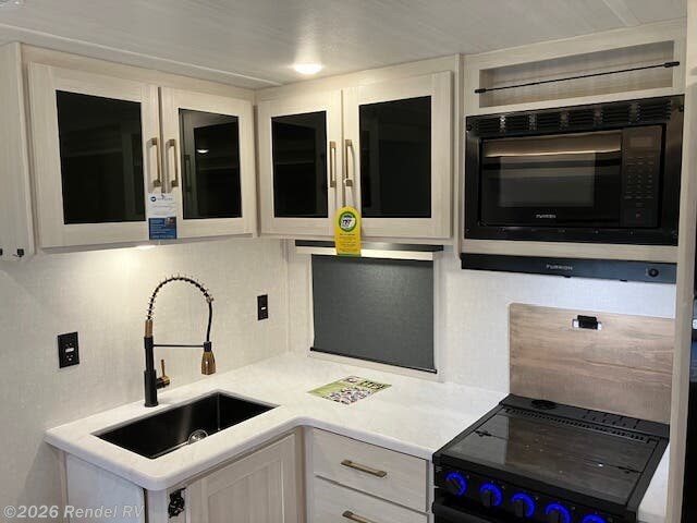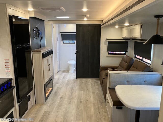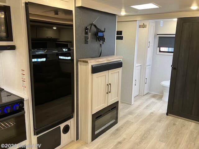 This travel trailer is packed with an impressive array of features to ensure your comfort and convenience. Cook delicious meals with ease using the spacious microwave, oven, and stove top burner. The generous water heater provides you with hot water for all your needs. Relax in the cozy theater seating, enjoy the ambiance created by the fireplace, and unwind after a long day of exploring.