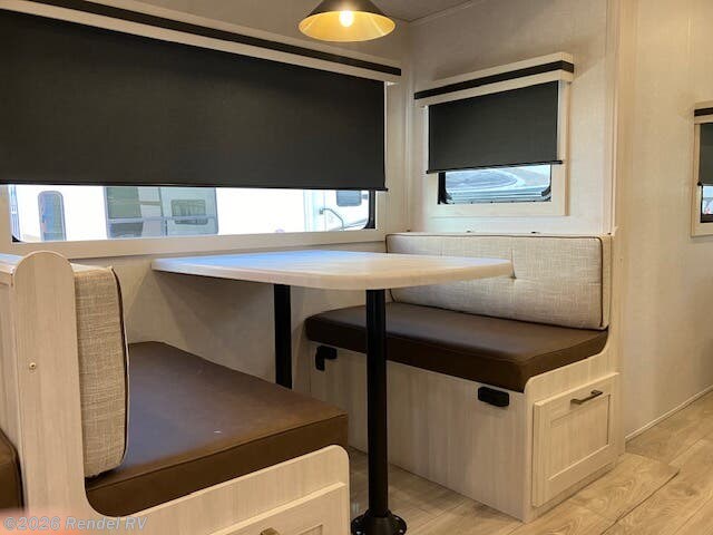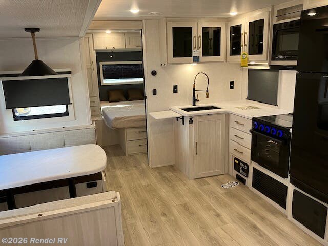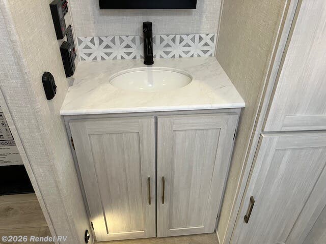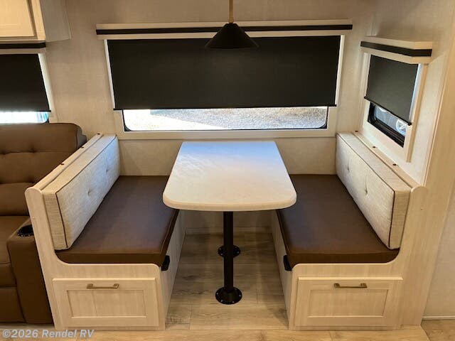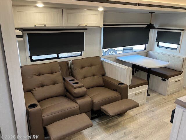 Staying cool will never be a concern thanks to the two air conditioners with 50 Amp service, ensuring a comfortable environment no matter the weather outside. The interior is adorned with soothing Desert Canyon tones, complemented by upscale features such as LED lights, a Bluetooth stereo, and a televator TV for your entertainment needs.