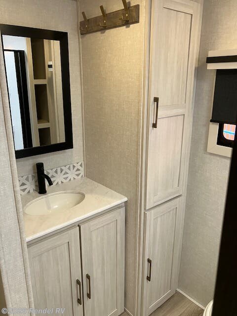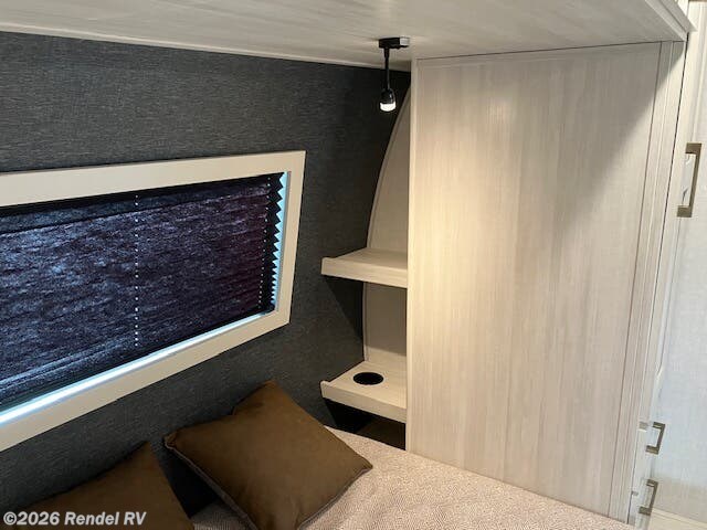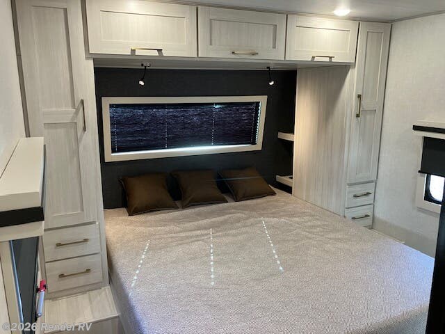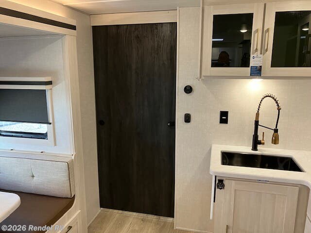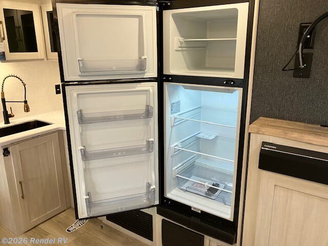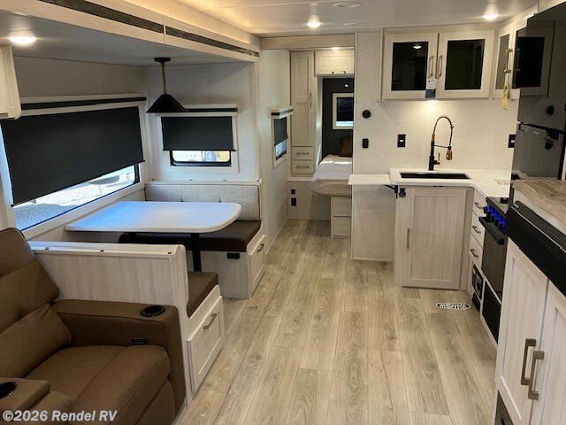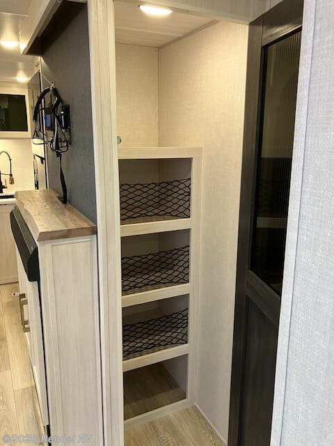 With a well-thought-out floor plan, including a rear bathroom and walk-in pantry, this travel trailer combines functionality with comfort. The master suite features a king-size bed, providing restful nights after long days of travel. Abundant storage space, including cubbie storage and large wardrobes, is designed to keep your belongings organized and easily accessible.