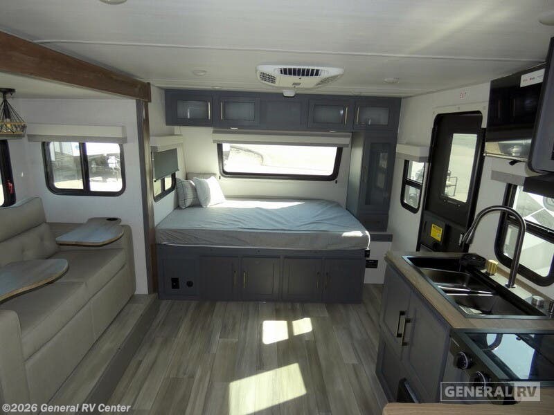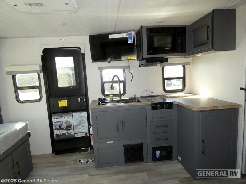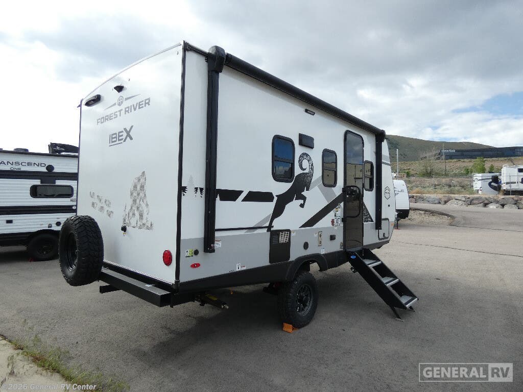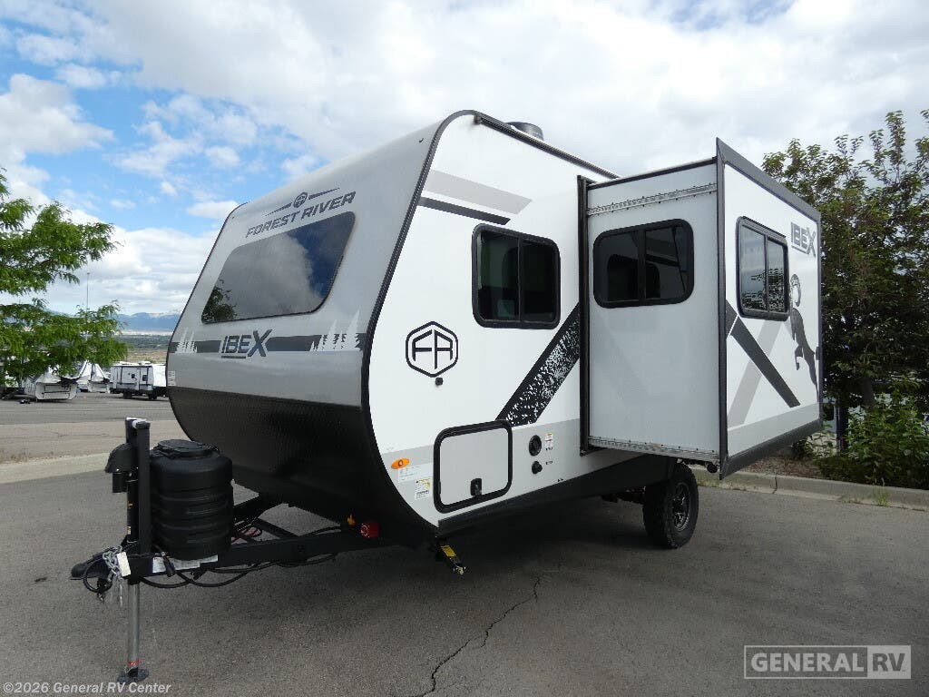 Discover the 2025 Forest River IBEX 16MKS, where compact design meets comfort and functionality. This 20.5-foot RV is perfect for adventurous couples or small families, offering a cozy retreat with its cleverly designed floorplan. The center kitchen is equipped with a full-size refrigerator and a two-burner cooktop, making meal preparation a breeze whether you're parked at a campsite or exploring off the grid. The convertible sofa provides additional sleeping space, ensuring room for up to four guests. Relax in the inviting center living area, which seamlessly transitions into the rear bath, featuring a convenient shower with curtain enclosure. The queen bed promises restful nights under the stars, while the powered retractable awning extends your living space into the great outdoors. With a fresh water capacity of 40 gallons and a robust electric/propane refrigerator, your adventures can continue uninterrupted. Lightweight yet durable, the IBEX 16MKS is ready to accompany you on endless journeys. For more information or to see this model in person, visit your nearest General RV dealership.
