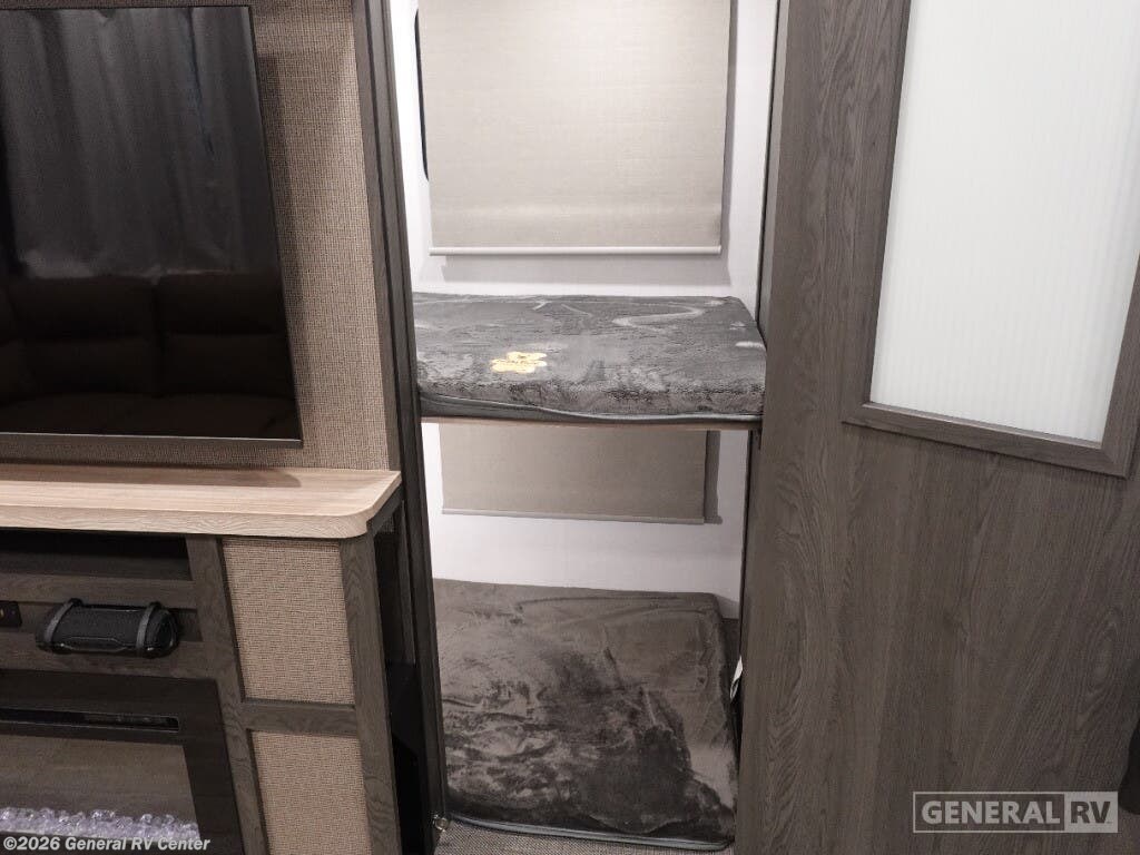 Forest River Impression fifth wheel 238RL highlights: Hidden Bunkhouse Bar Stools Theater Seats 20' Adjustable Power Awning 2" Receiver Hitch You will love everything about this fifth wheel! The rear sectional sofa has a sleeper sofa and theater seat attached for a relaxing evening by the entertainment center with a 40" TV. Next to the entertainment center is a hidden door with cabinets and 16 cu. ft. 12V refrigerator, and above it is a 30" x 74" flip-down bunk and pad below it, all housed within a slide. The kitchen has plenty of countertop space on the swivel bar top with four bar stools to enjoy your meals. As you walk up the floating steps, you will notice the full bathroom to your left with a walk-in shower with a skylight for added natural lighting. The front private bedroom has a queen bed with Versa tilt technology and wardrobes on either side, plus there is a closet that is prepped for a washer and dryer! With any Impression mid-profile fifth wheel by Forest River, the focus of the design is comfort and value, built with quality craftsmanship and attention to customer's desires in each Impression! The exterior includes upgraded E-rated MAXXIS tires, custom exterior graphics package, and insulated slam latch baggage doors. There is also an enclosed docking station, an outside shower, and a 100W roof solar panel for off-grid capabilities. The fully heated and enclosed AccessiBelly has removable underbelly panels and offers four seasons of travel, and there is an industry leading 15K A/C plus 35K BTU furnace to keep you comfortable. The interior has lumbercore cabinetry, residential linoleum, residential backsplash in the kitchen, and oversized opening windows in the living area for more natural lighting and good air flow.