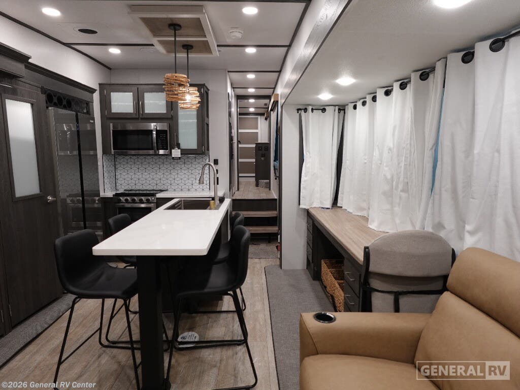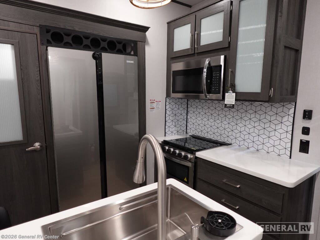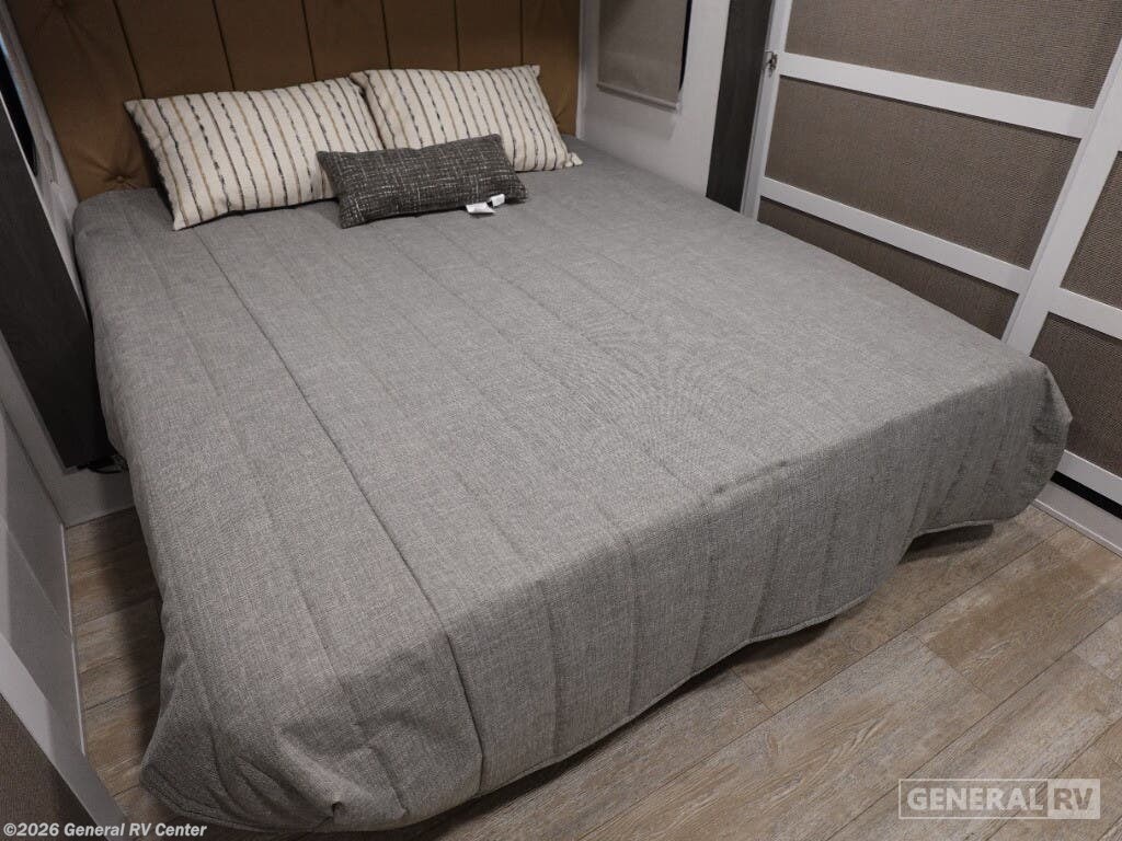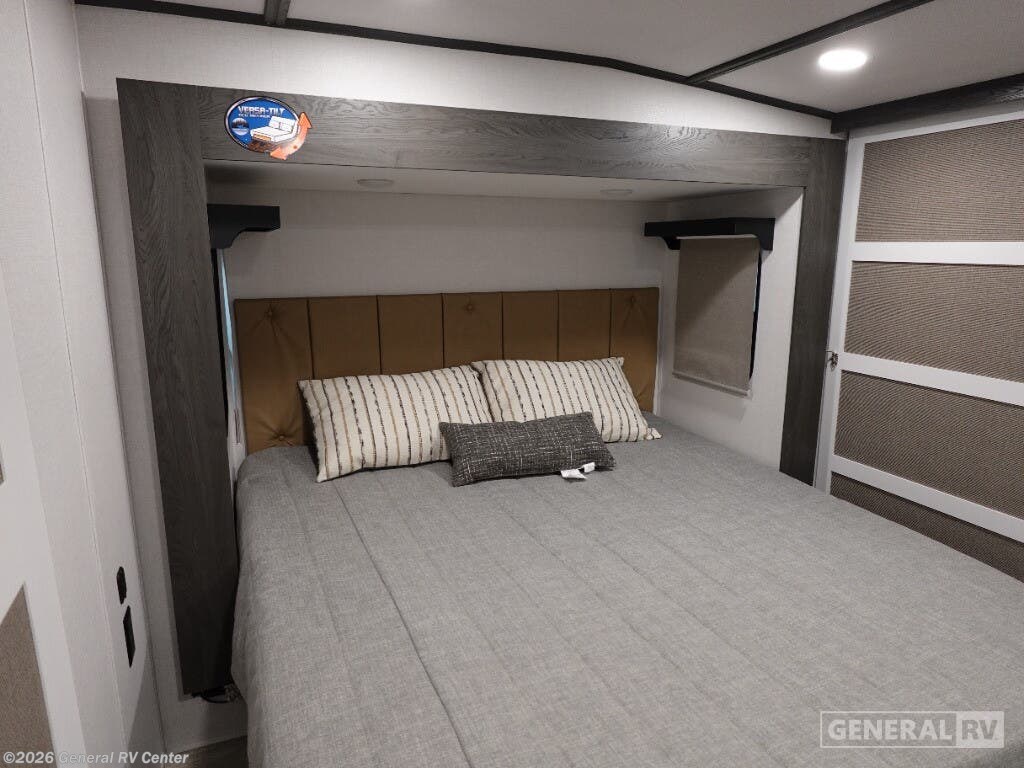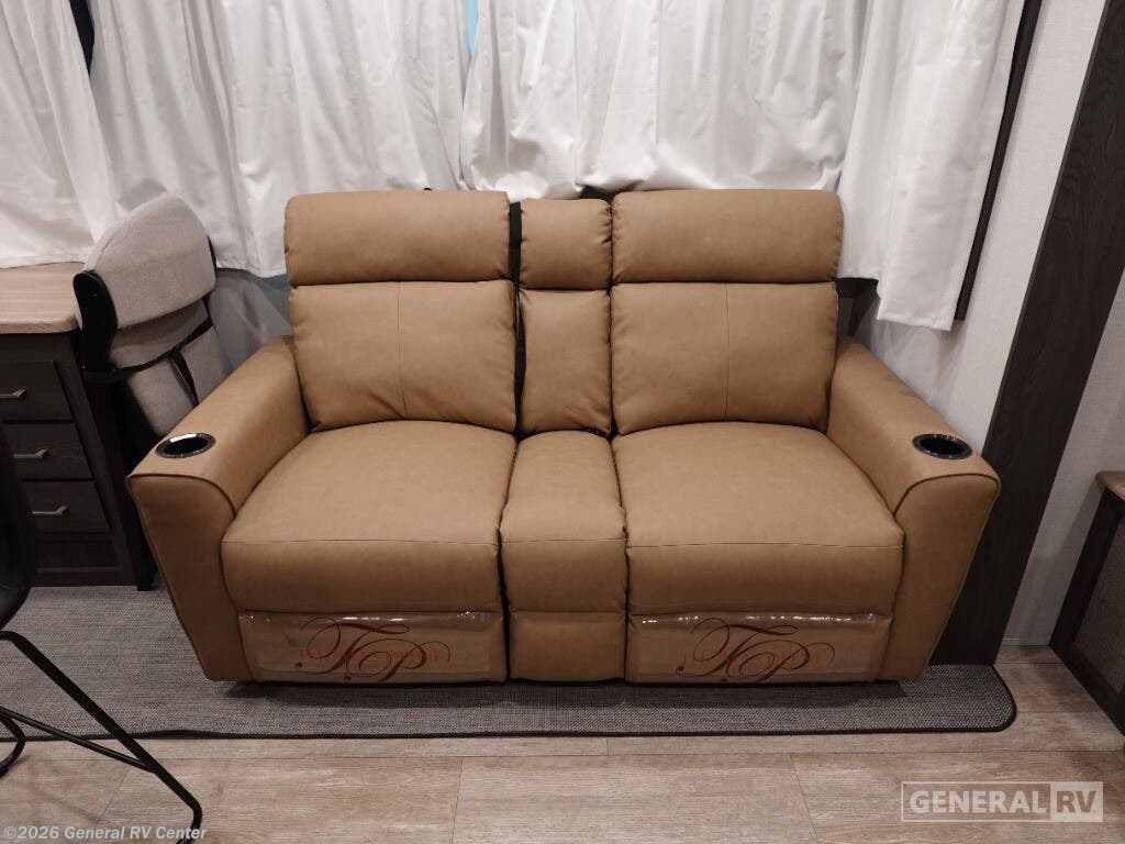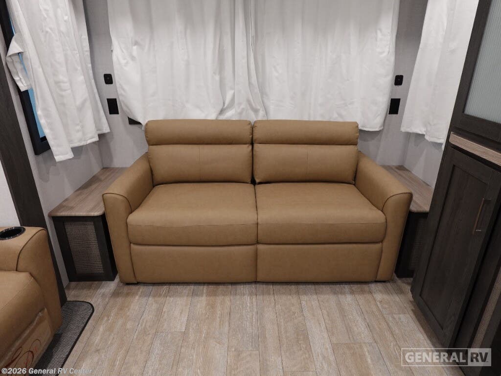 Discover the 2025 Forest River Impression 318RL, where luxury and functionality blend seamlessly to create the perfect home on wheels. This stunning fifth wheel offers a spacious interior with three slide-outs, providing ample room for family and friends. The rear living area is a true highlight, featuring a cozy theater seat and a tri-fold hide-a-bed sofa, perfect for relaxing or entertaining. The center kitchen is a chef's delight, equipped with a full-size electric refrigerator and a three-burner cooktop, ensuring you have everything you need to prepare delicious meals. Retreat to the front bedroom, where a king bed with Versa Tilt technology awaits, offering ultimate comfort after a day of adventure. The space is thoughtfully designed with a dresser bench and washer/dryer prep for added convenience. With a fresh water capacity of 57 gallons and generous storage throughout, including unobstructed pass-through compartments, this RV is ready for extended journeys. Enjoy the outdoors with two powered retractable awnings, providing shade and comfort wherever you roam. Visit your nearest General RV dealership to explore this exceptional model in person!