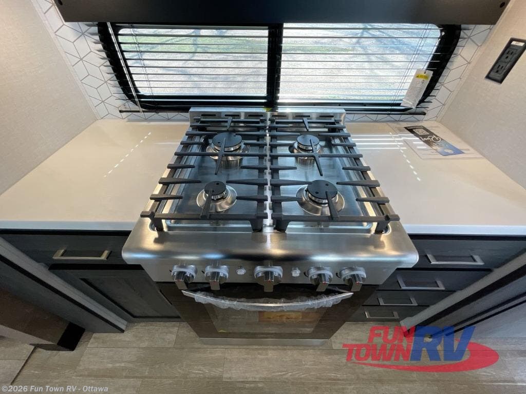 With any Impression mid-profile fifth wheel by Forest River, the focus of the design is comfort and value, built with quality craftsmanship and attention to customer's desires in each Impression! The exterior includes upgraded E-rated MAXXIS tires, custom exterior graphics package, and insulated slam latch baggage doors. There is also an enclosed docking station, an outside shower, and a 100W roof solar panel for off-grid capabilities. The fully heated and enclosed AccessiBelly has removable underbelly panels and offers four seasons of travel, and there is an industry leading 15K A/C plus 35K BTU furnace to keep you comfortable. The interior has lumbercore cabinetry, residential linoleum, residential backsplash in the kitchen, and oversized opening windows in the living area for more natural lighting and good air flow.