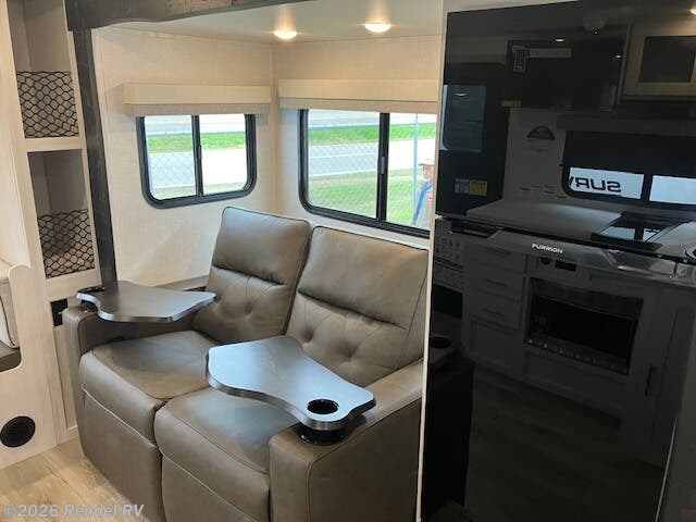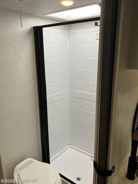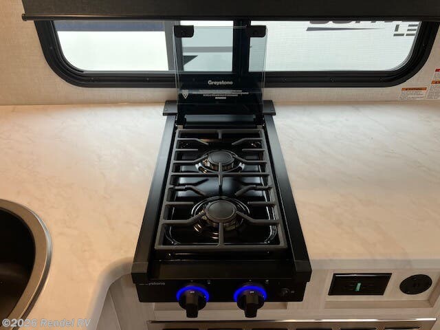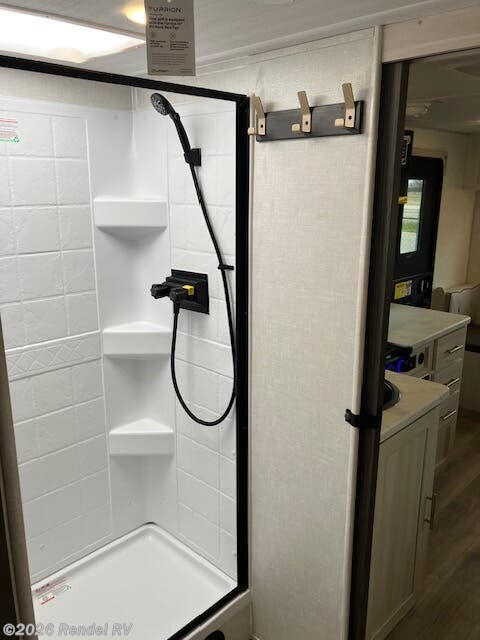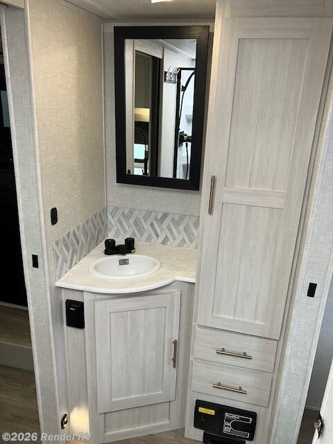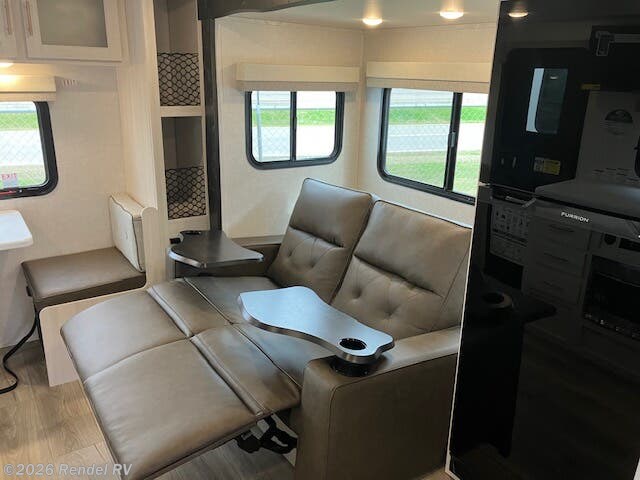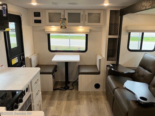 Step inside to discover a thoughtfully designed interior with features such as plush theater seating, a queen bed in a private bedroom, and a stylish booth dinette that invites relaxation. The bathroom features a convenient walk-in shower with an upgraded 4-speed fan ensuring optimal ventilation. Need to unwind? Let the outdoor kitchen with a flat top griddle be your grilling paradise, equipped with hot & cold water for all cooking needs.