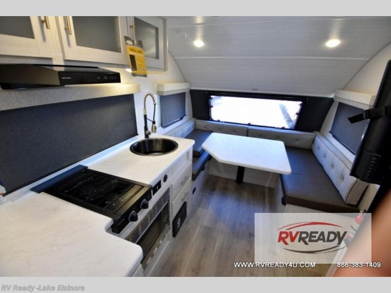 With any R-Pod travel trailer by Forest River, you will enjoy affordable luxury at the lowest tow weight in its class! There is a sealed underbelly with forced heat, a curved dual-pane acrylic front window with a bug screen and night shade, plus a large roof mounted solar panel for off-grid capabilities. The 15K A/C unit will keep you comfortable during the summer camping months, and the tankless water heater will provide endless hot showers after hiking, biking, swimming and more! Each model also includes a black glass friction hinge entrance door, roof ladder prep, exterior motion lighting, plus a hot and cold exterior spray port to wash off sand from the beach. Inside, you'll enjoy seamless Surf-X kitchen countertops, blackout roller shades, and a central vacuum system for hassle-free cleaning!