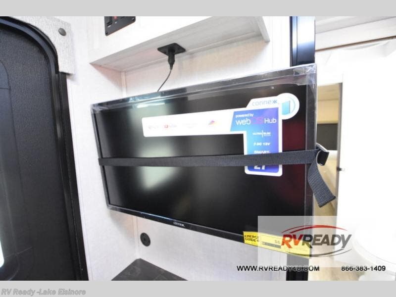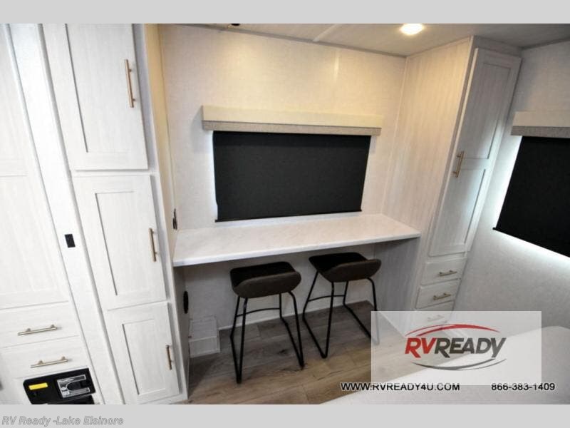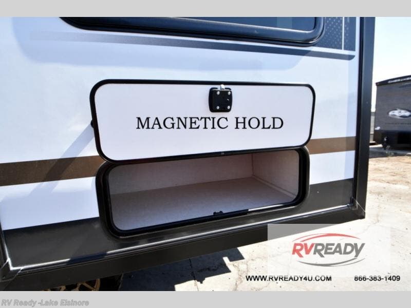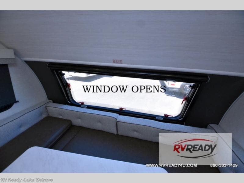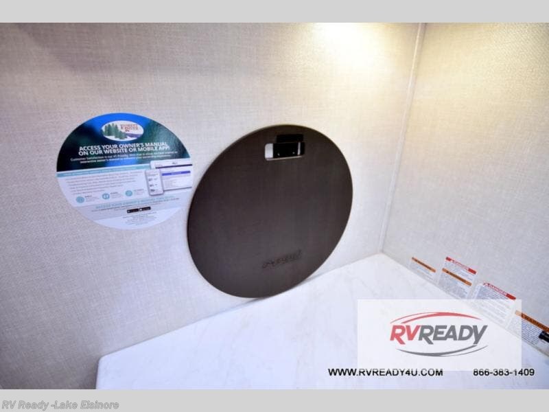 Time spent in this travel trailer will be time well spent! You will have all the comforts of home, including a private bedroom with two wardrobes, a queen bed, and a desk/dresser that will allow you to get some work done if needed. The front U-shaped dinette with a swivel dinette table will double as dining and sleeping space, and the walk-through bath will be easily accessible for everyone to use. You can prepare meals on the two burner cooktop, or use the convection microwave. There is also a 12V black glass 12V refrigerator for food storage and plenty of counter space to prep meals. This model also includes the Hood River Edition that comes with Mud Legend all terrain tires with TPMS, advanced ground clearance, a MaxxAir vent cover, and 12V tank heaters!