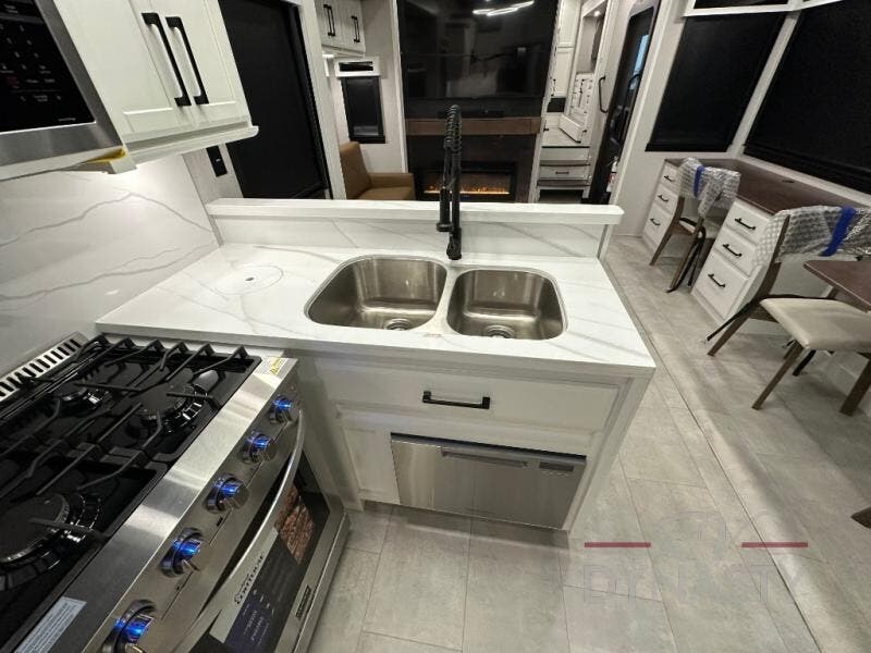 The Forest River RiverStone fifth wheels and toy haulers are luxurious units that have it all! You'll find an automatic six-point hydraulic level-up system to keep your unit in place, and there is preparation for a four-camera observation system. The King Wi-Fi Max router and omni-directional Wi-Fi antenna/extender will help you stay connected to the outside world, and you'll never have to overpack again since the Splendid “Astral” stackable washer and dryer will let you clean the small amount of clothes you've brought with you. Another high luxury is the Fischer Paykal dishwasher which will allow you to spend more time enjoying your camp life and less time cleaning up. Each unit is built with a Trail-Aire Road Armour suspension system, dual-pane frameless windows, a full docking station, a 190W solar panel, and a Firefly integrated touch control system.