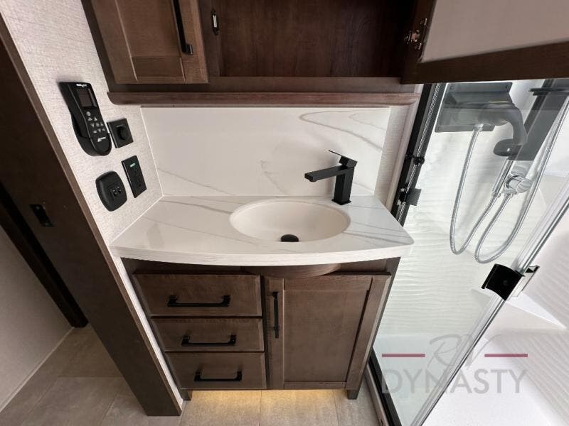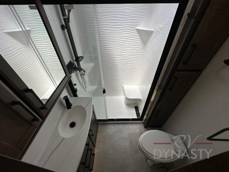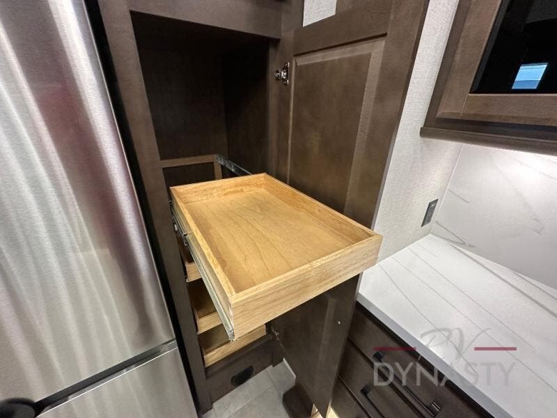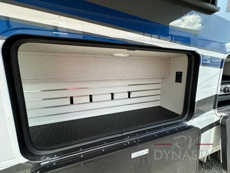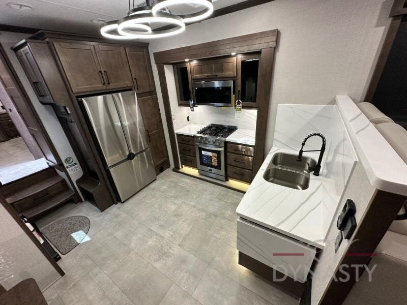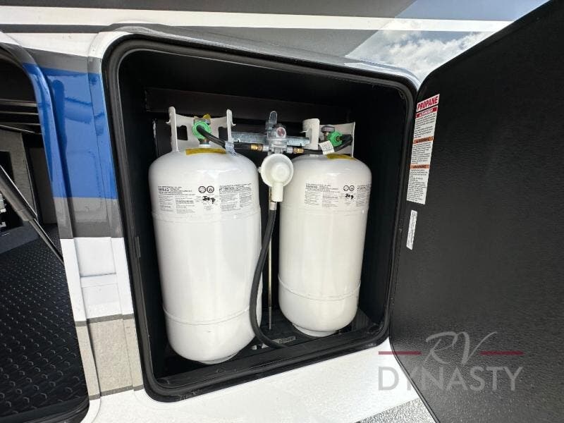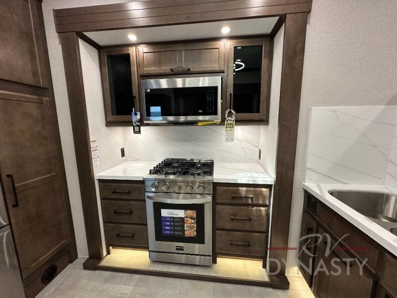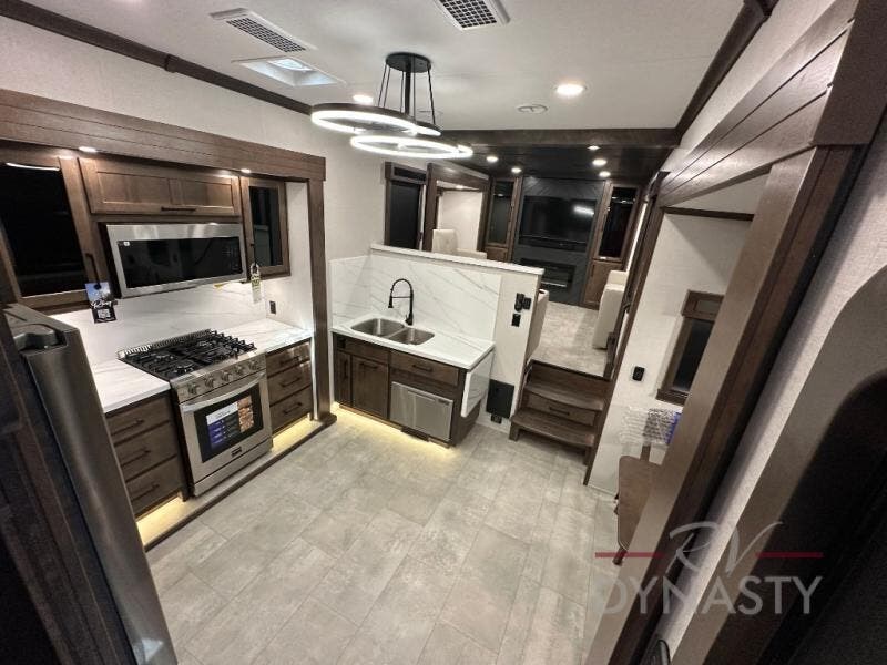 The Forest River RiverStone fifth wheels and toy haulers are luxurious units that have it all! You'll find an automatic six-point hydraulic level-up system to keep your unit in place, and there is preparation for a four-camera observation system. The King Wi-Fi Max router and omni-directional Wi-Fi antenna/extender will help you stay connected to the outside world, and you'll never have to overpack again since the Splendid “Astral” stackable washer and dryer will let you clean the small amount of clothes you've brought with you. Another high luxury is the Fischer Paykal dishwasher which will allow you to spend more time enjoying your camp life and less time cleaning up. Each unit is built with a Trail-Aire Road Armour suspension system, dual-pane frameless windows, a full docking station, a 190W solar panel, and a Firefly integrated touch control system.