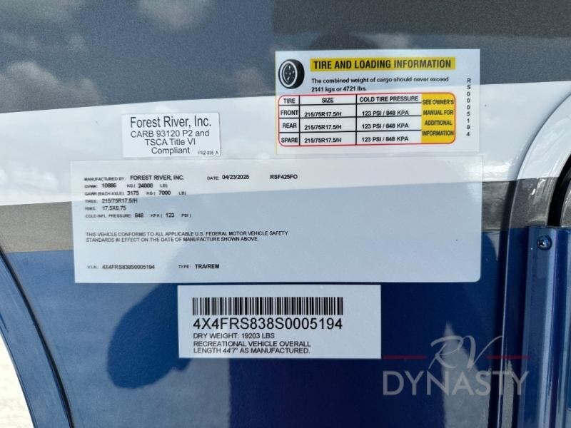 2025 Forest River RiverStone 425FO Specifications