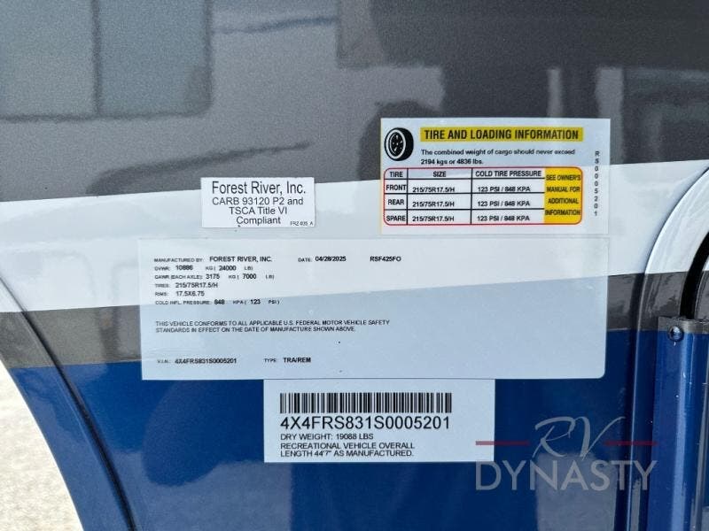 2025 Forest River RiverStone 425FO Specifications