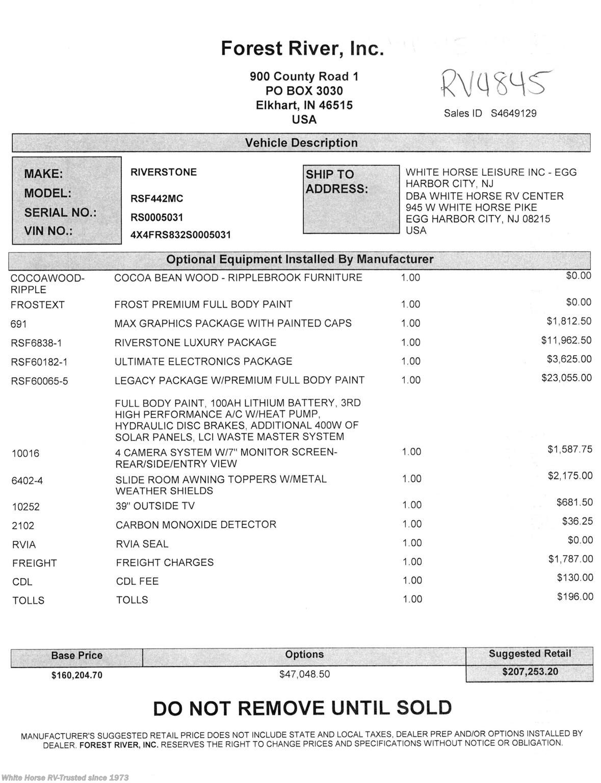 - Stock #RV4845
