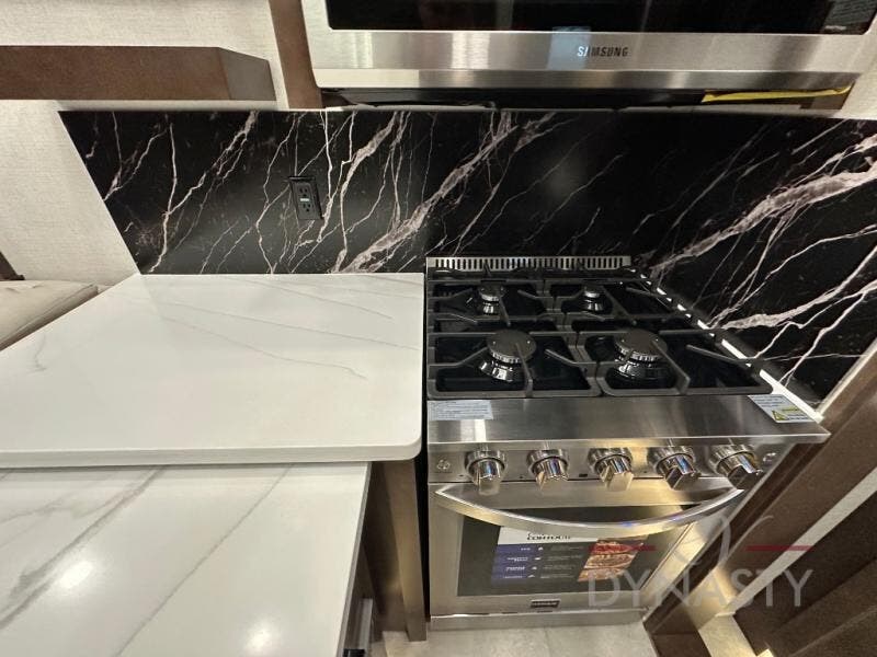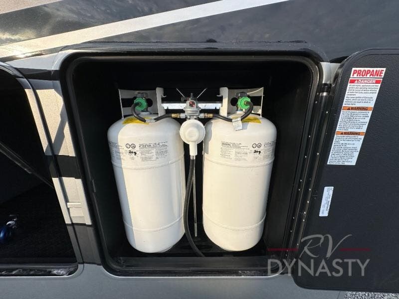 The Forest River RiverStone fifth wheels and toy haulers are luxurious units that have it all! You'll find an automatic six-point hydraulic level-up system to keep your unit in place, and there is preparation for a four-camera observation system. The TravlFi Journey XTR 4G/LTE router and WiFi extender will help you stay connected to the outside world, and you'll never have to overpack again since the Splendid “Astral” stackable washer and dryer will let you clean the small amount of clothes you've brought with you. Another high luxury is the Fischer Paykal dishwasher which will allow you to spend more time enjoying your camp life and less time cleaning up. Each unit is built with an LCI Road Armour suspension system, dual-pane frameless windows, a full docking station, a 200W solar panel, and a BMPro touch control system.