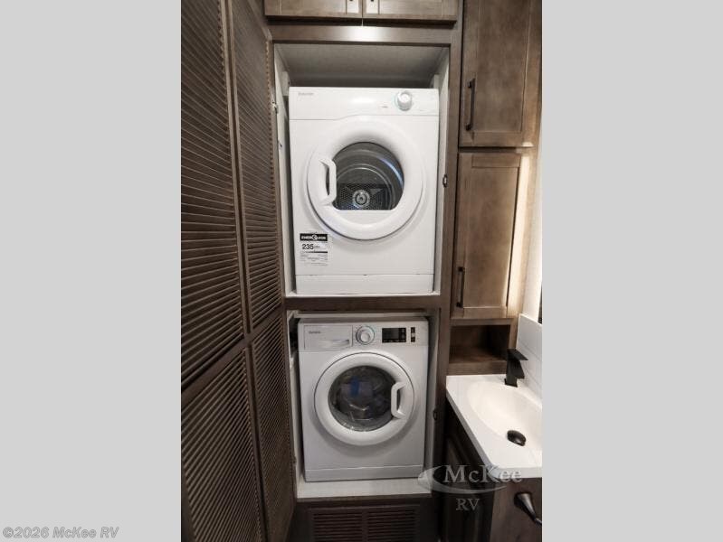 - Luxury Package - 6-Point Hydraulic Leveling System, 4 Camera System, TravlFi Journey XTR 4G/LTE Router & WiFi-Extender, Splendide Stacker Washer / Dryer, Hardwood Cabinetry Throughout, 40" LED Bedroom TV, 12V Heated Holding Tanks, Dishwasher, Ceiling Fan, Truma Aqua Go Comfort On-Demand Hot Water Heater, LP Generator Prep, BMPro Energy Management System, Dual Patio Awnings w/Weathershield & Two Folding Charis.