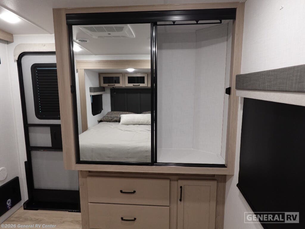 Experience the perfect blend of comfort and adventure with the 2025 Forest River Rockwood Mini Lite 2516S. This RV is designed to cater to your every need while you're on the road. With its spacious front kitchen equipped with a mid-size electric refrigerator and three-burner cooktop, meal prep becomes a breeze. The center living area, featuring a cozy 60" theater seat and an optional 68" hide-a-bed, provides a relaxing retreat to unwind after a day of exploration. The rear bedroom promises restful nights with a luxurious queen bed, surrounded by ample storage options. Enjoy the convenience of a center bath, complete with a plastic/glass shower. The 19 ft. powered retractable awning extends your living space outdoors, perfect for enjoying nature in comfort. With a fresh water capacity of 54 gallons and generous gray and black water tanks, your adventures can last longer off the grid. This model is a perfect companion for those who seek both convenience and style on their journeys. For more details, visit your nearest General RV Dealership.